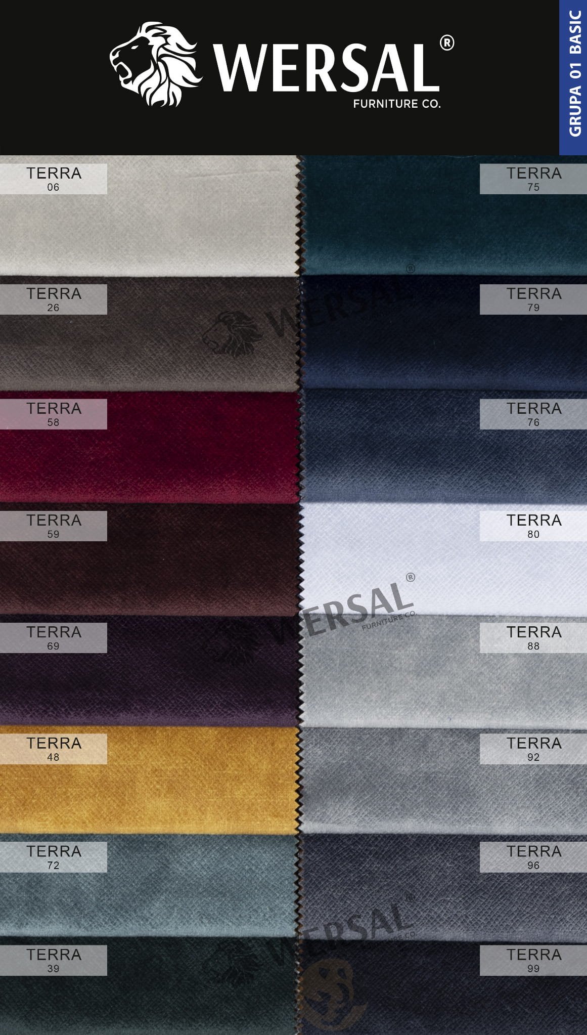 Der Stoff Terra 48 hat eine leichte, markante Webart, die aus der Nähe sichtbar ist. Dafür sorgt die interessante Struktur des Materials, nicht eine ebene Oberfläche.