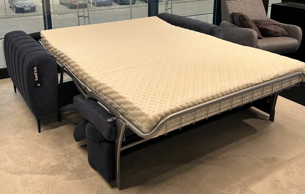 - Im Inneren des Sofas befindet sich eine normale Matratze und im ausgeklappten Zustand ähnelt das Sofa einem Bett.