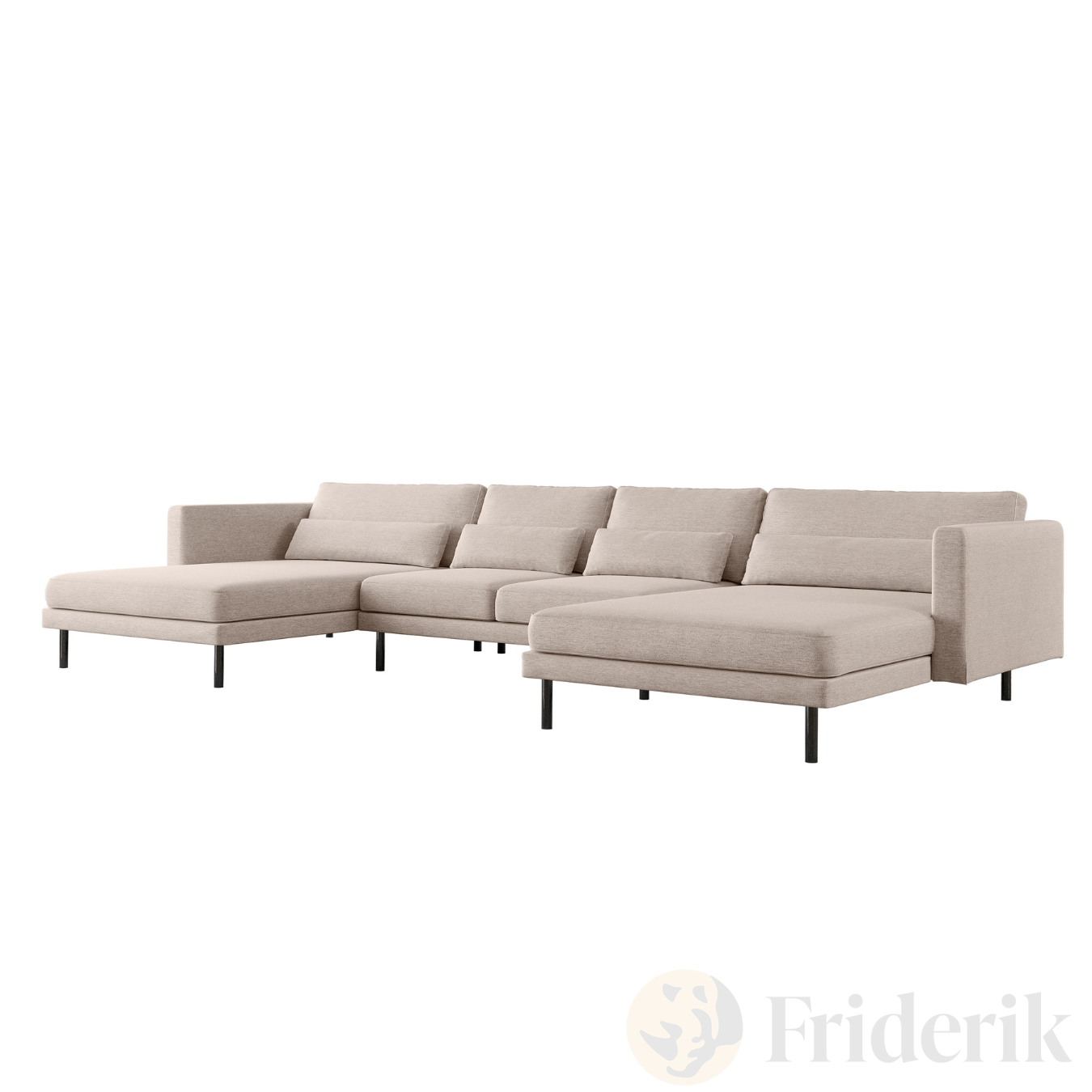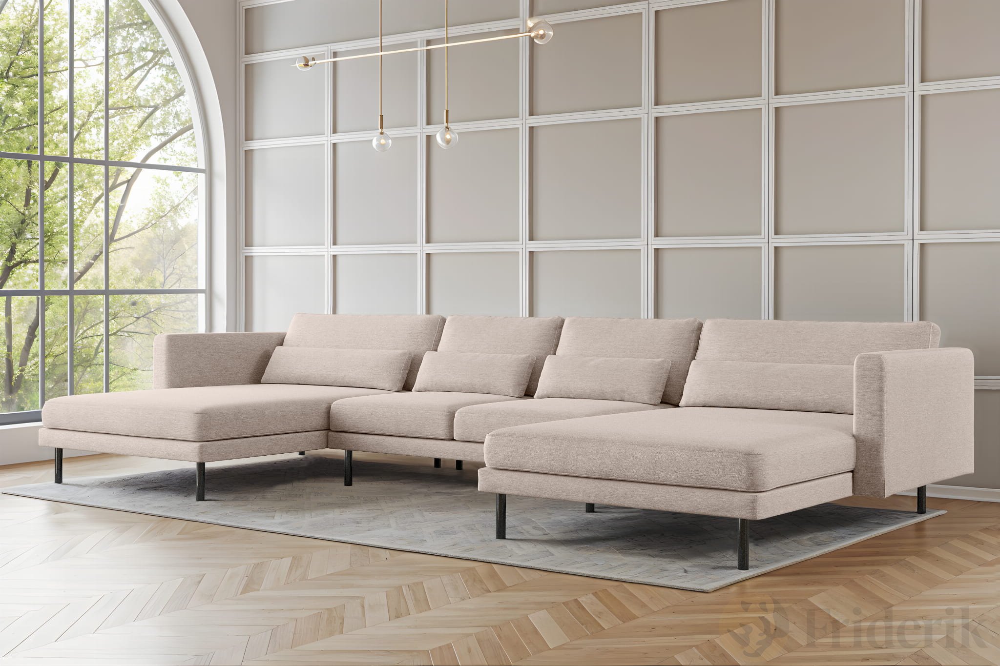 Das moderne Ecksofa in U-Form wurde für gemeinsame Momente und maximale Entspannung konzipiert. Die großzügige Sitzfläche, ergonomische Rückenlehnen und im Lieferumfang enthaltene Kissen sorgen für höchsten Komfort. Eine hervorragende Wahl für geräumige Wohnzimmer – sowohl in klassischen als auch in modernen Einrichtungsstilen.