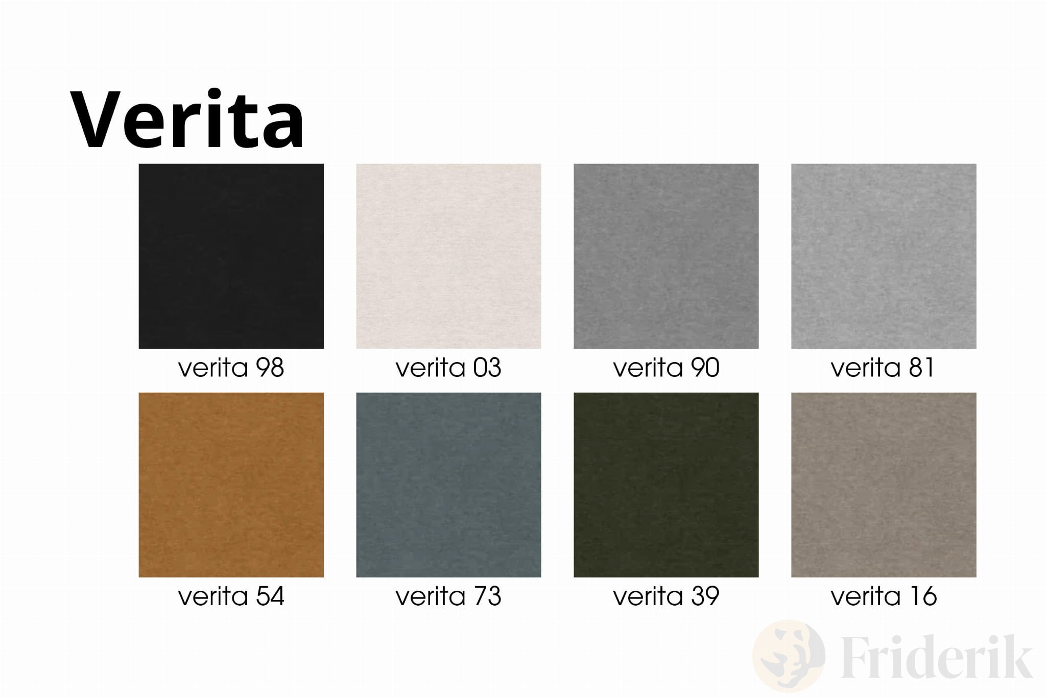 Der verwendete Polsterstoff VERITA überzeugt durch seine gleichmäßige, fein strukturierte Webart, die ihm eine dezente und zugleich edle Optik verleiht. Er fühlt sich angenehm an und ist dank seiner Strapazierfähigkeit ideal für Haushalte mit Kindern oder Haustieren geeignet. Die Kombination aus eleganter Struktur und robuster Qualität macht VERITA zur perfekten Wahl für stilvolle, langlebige Möbel.