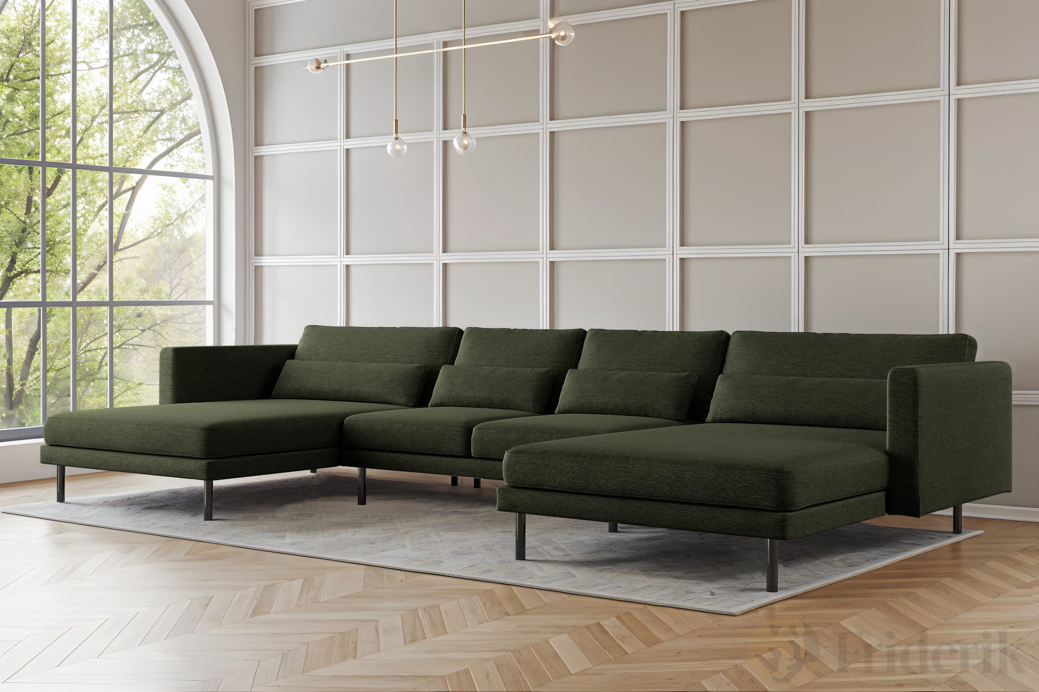 Ecksofa DANI U – Großes modulares Familiensofa in U-Form, bequeme Couch für Wohnzimmer mit Verita Stoff, Olivgrün 49