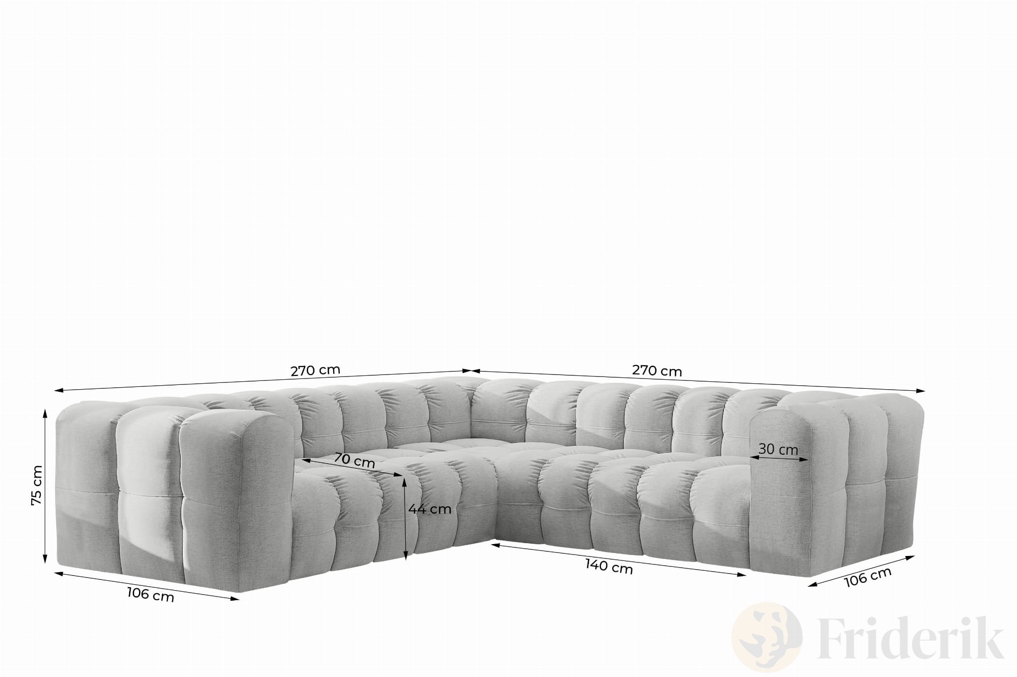 Das Ecksofa BALOO CORNER ist mehr als nur ein Möbelstück – es ist das Herz Ihres Wohnzimmers. Seine weichen, großzügigen Formen und charakteristischen Steppungen schaffen ein einzigartiges Ambiente und verbinden modernen Stil mit zeitloser Gemütlichkeit. Ideal für Familienabende, Treffen mit Freunden oder entspannte Momente nach einem langen Tag.