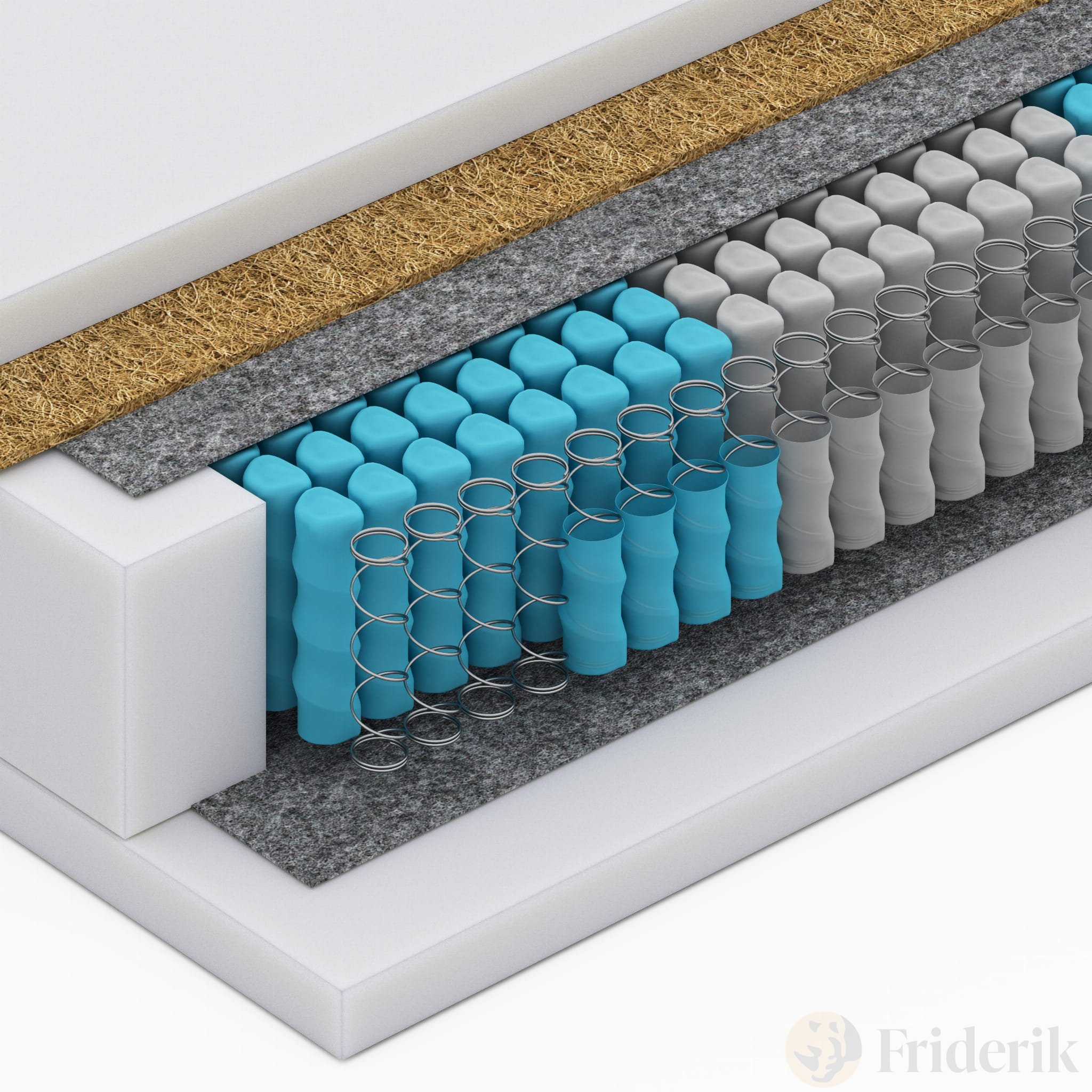 Eine Schicht Kokosmatte mit einem Gewicht von 1000 g. Kokos ist extrem luftig. Verleiht der Matratze den passenden Härtegrad. Es absorbiert und absorbiert Wasser und Schweiß und verhindert dadurch unangenehme Gerüche. - FILC – versteift die gesamte Struktur und erhöht so die Haltbarkeit der Matratze.