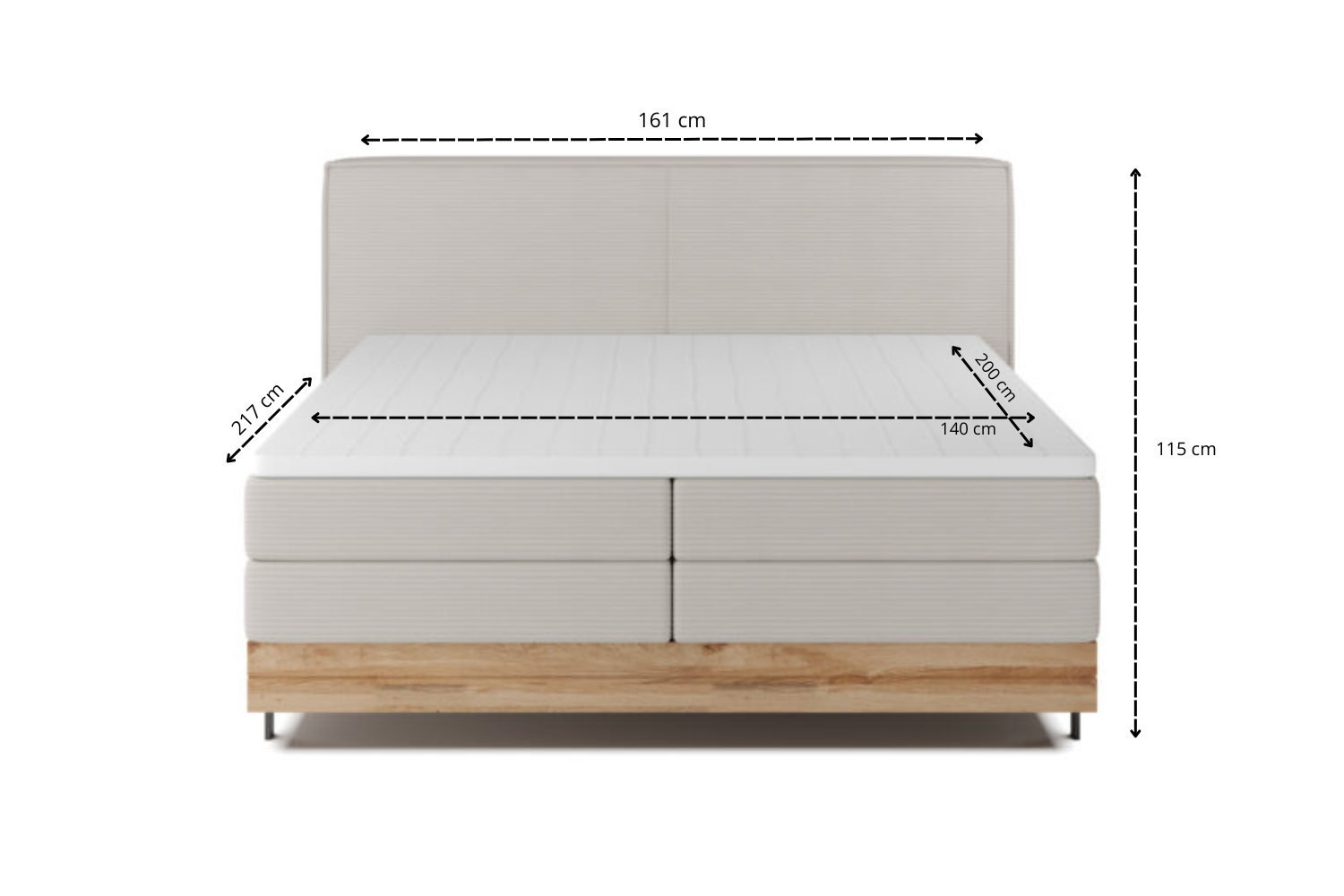 Drei Größen zur Auswahl – wählen Sie die passende Variante für Ihr Zuhause: 140×200 cm, 160×200 cm oder 180×200 cm.