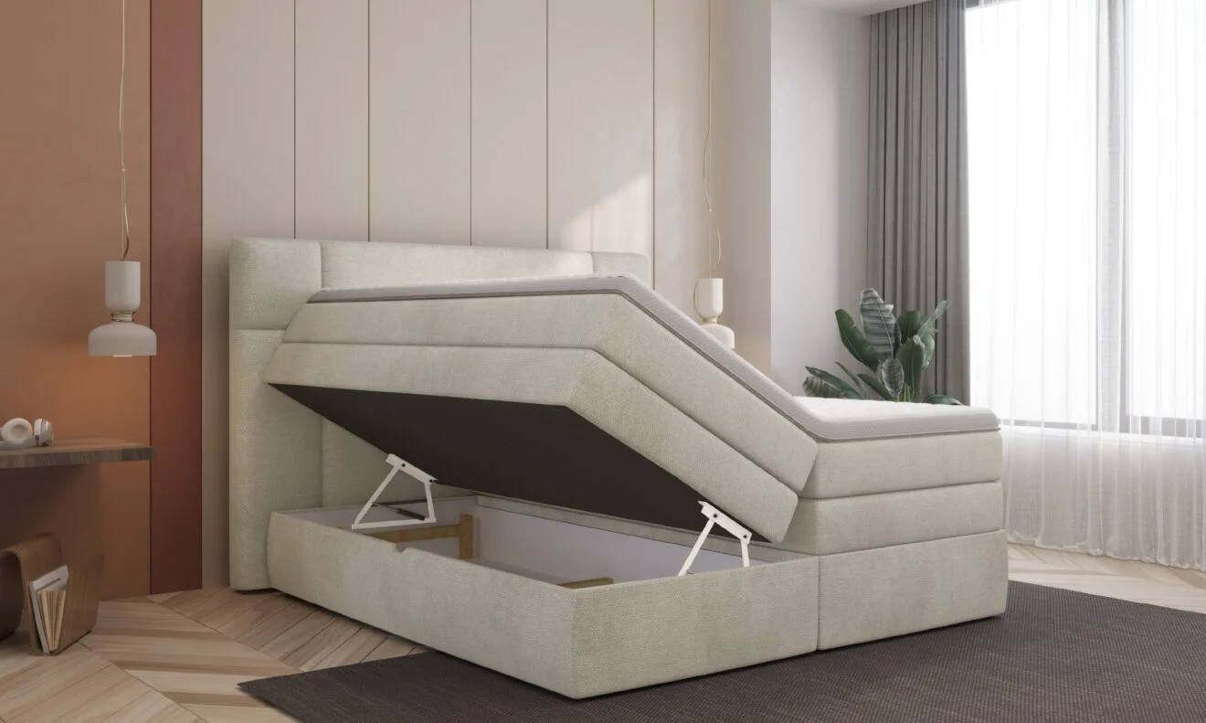 Boxspringbett PALACE mit 7-Zonen-Taschenfederkern & Bettkasten – modernes Polsterbett 140x200 cm