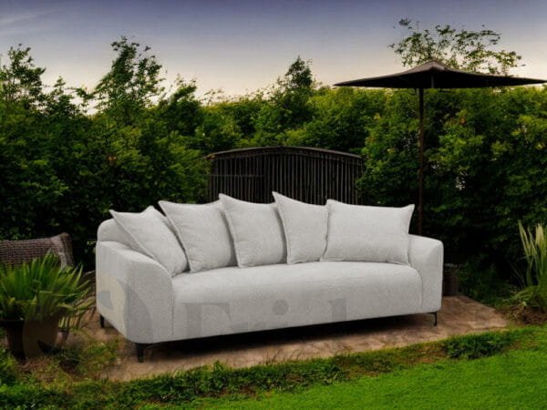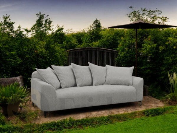Die Polsterung besteht aus hochwertigem PORTORIKO-Stoff, der speziell für den Außenbereich entwickelt wurde. Das Material ist wasserabweisend, schmutzresistent und UV-beständig, sodass das Sofa auch bei längerer Nutzung im Freien seine Ästhetik und Funktionalität behält. Zudem ist der Stoff pflegeleicht und leicht zu reinigen, was die Wartung erheblich erleichtert.