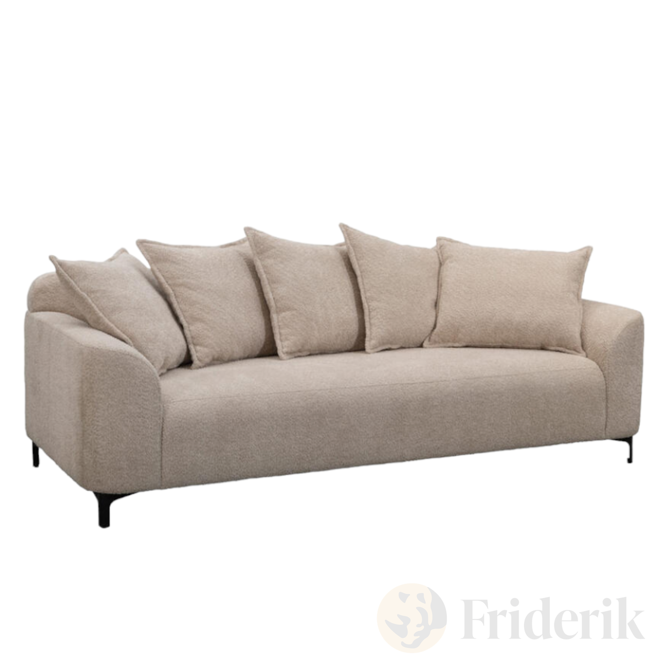 Das Sofa besteht aus langlebigen Materialien, die Stabilität und Widerstandsfähigkeit gewährleisten. Der Rahmen aus Kiefernholz, wasserfester OSB-Platte und Faserplatte sorgt für Feuchtigkeitsresistenz und eine lange Lebensdauer. Die Konstruktion wird von vier 120 mm hohen Metallbeinen getragen, die nicht nur für Stabilität sorgen, sondern dem Sofa auch eine moderne Optik verleihen.