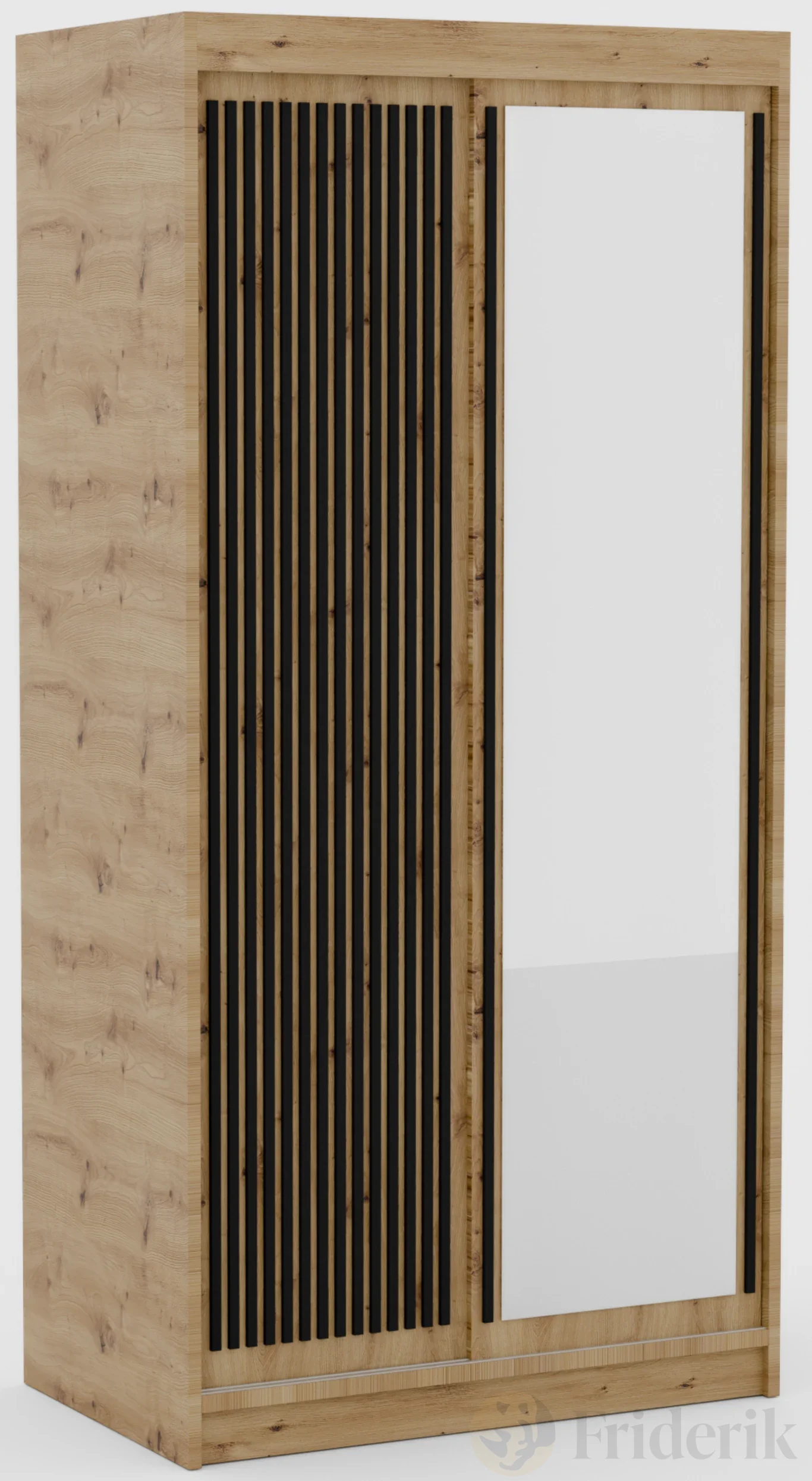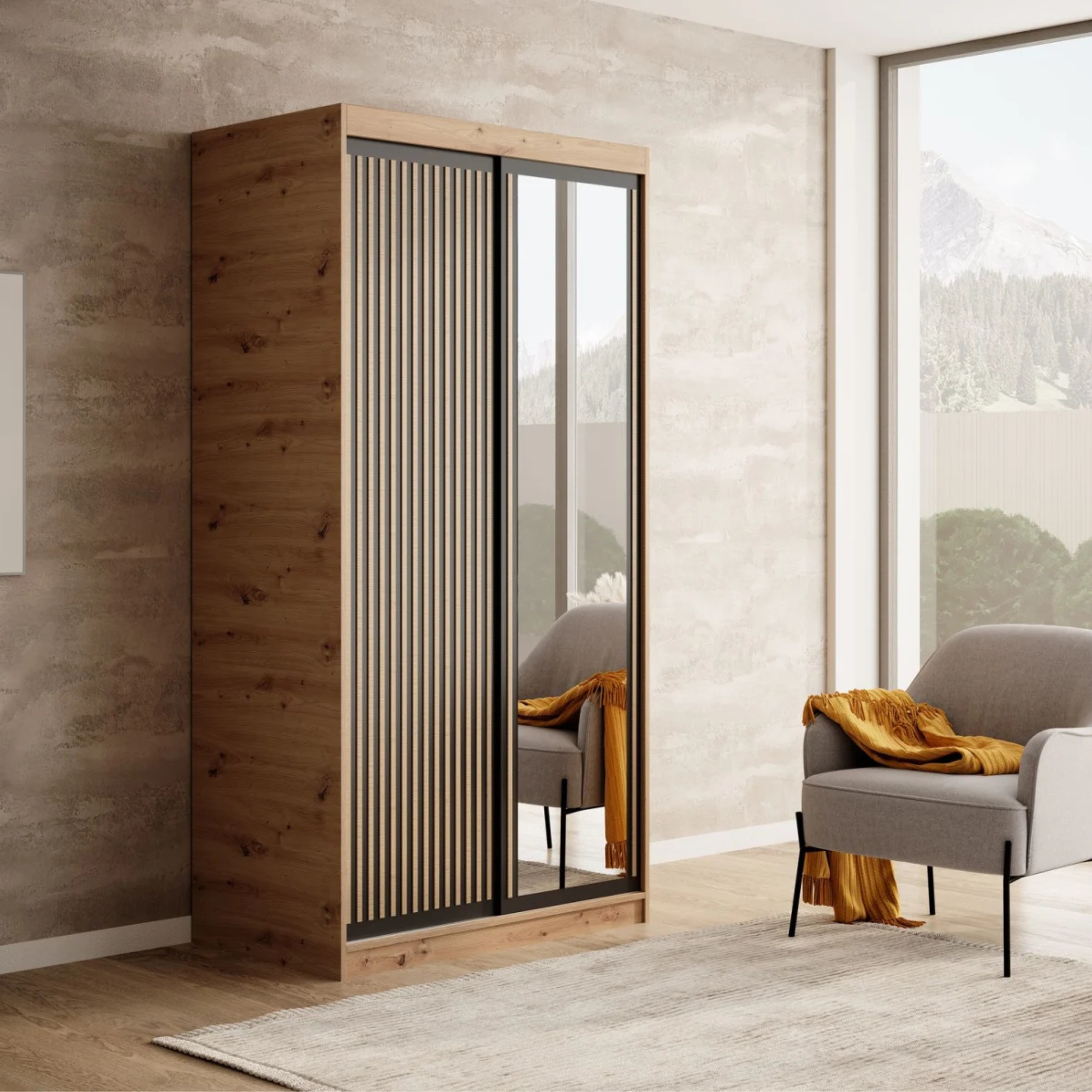 DELIA Kleiderschrank – Moderner Lamellen-Schrank, Schiebetürenschrank mit Spiegel & Stauraum | 100 cm - Holz / Schwarz