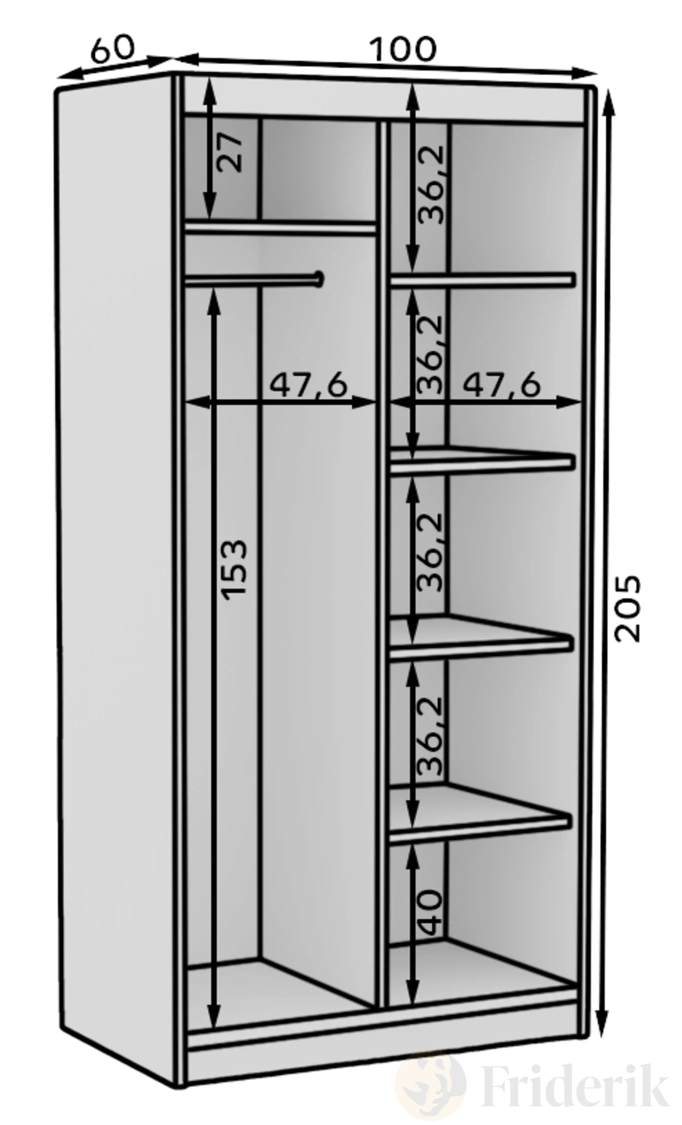 Durchdachte Innenaufteilung – 5 Einlegeböden und Kleiderstangen für Kleidung, Accessoires und mehr
