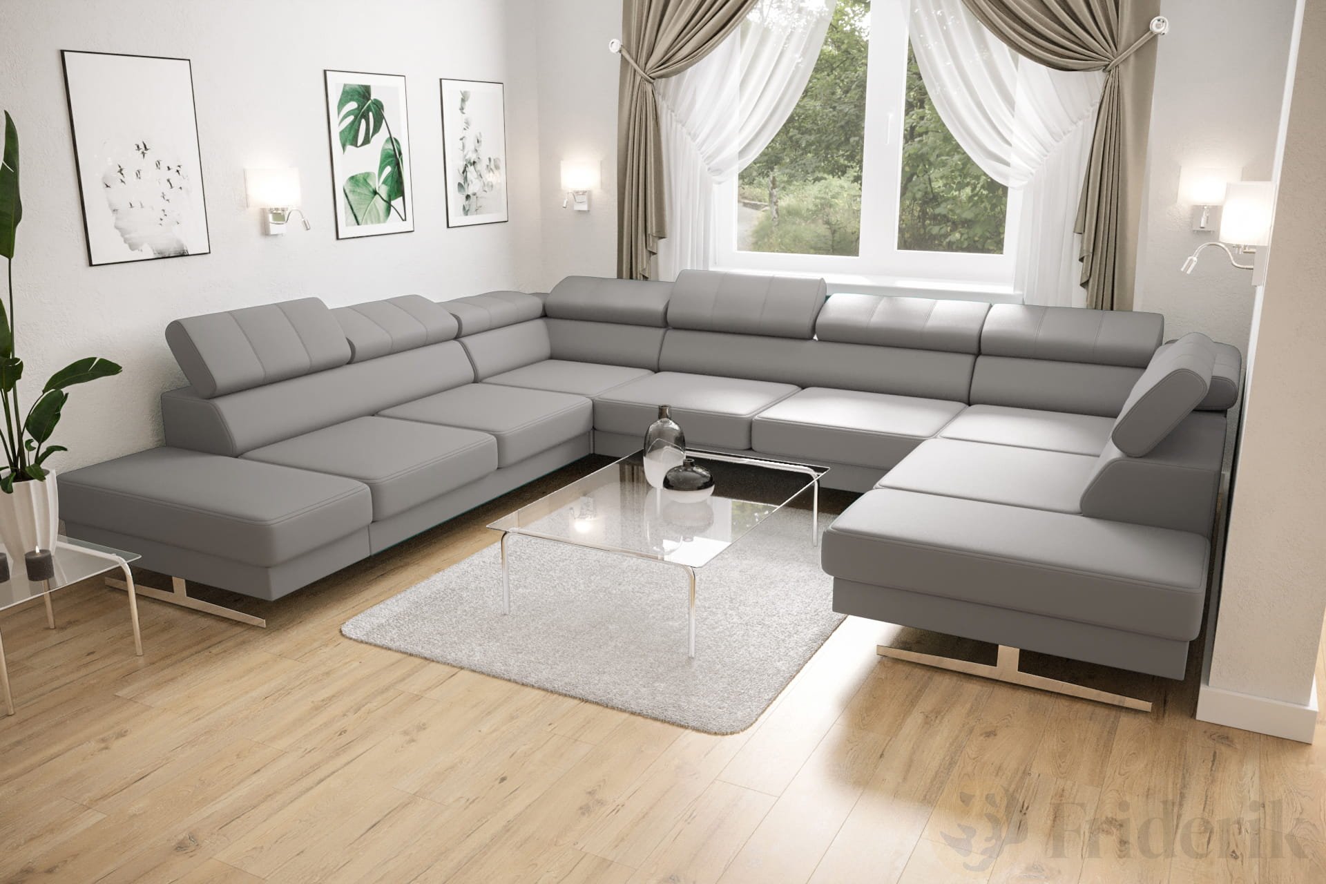 EMPORIO MAX I Ledersofa U-Form 350×300×225 cm – modernes Design & Komfort, Hellgrau (U-24)