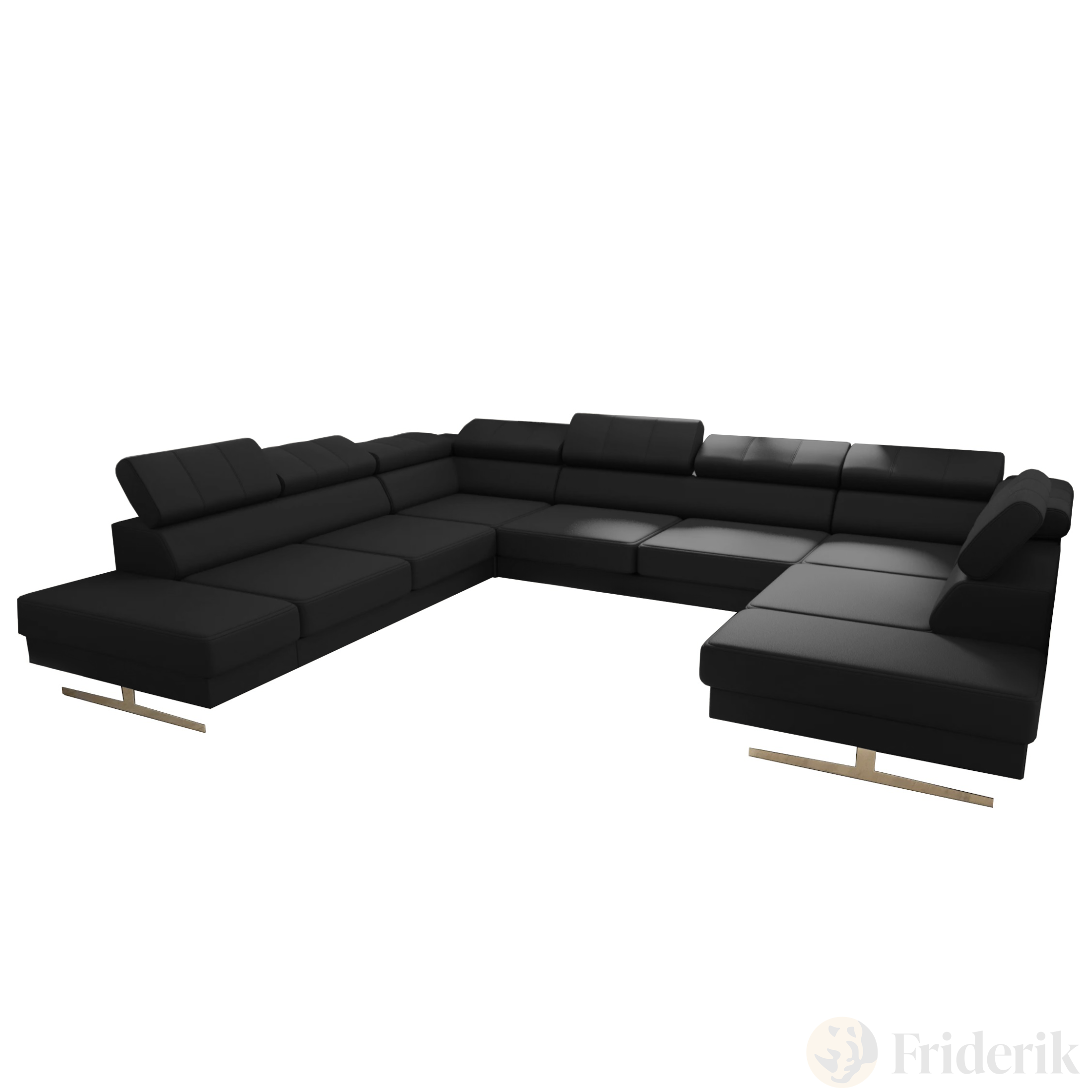 EMPORIO MAX I Ledersofa U-Form 350×300×225 cm – modernes Design & Komfort, Schwarz K-70