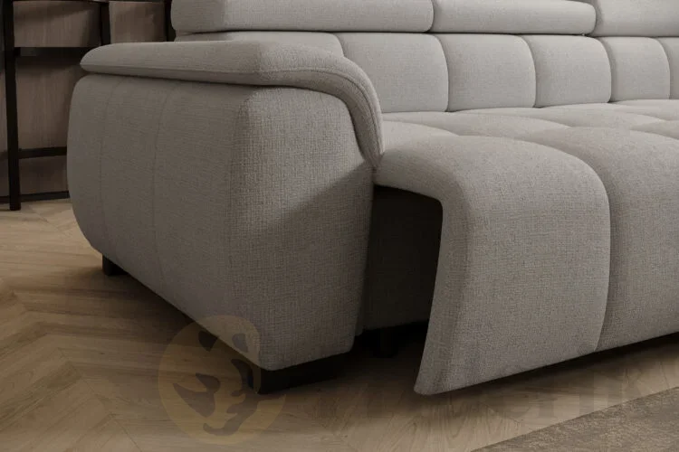 Das Ecksofa ALVIN verbindet modernes Design mit innovativer Funktionalität. Klare Linien, eine charakteristische abgerundete Armlehne und elegante Steppungen verleihen diesem Sofa eine besondere Ausstrahlung. Gleichzeitig sorgt die durchdachte Konstruktion – bis zum Boden reichende Form, verstellbare Kopfstützen und elektrisch regulierbare Sitztiefe – für ein außergewöhnlich komfortables Sitz- und Relaxerlebnis.