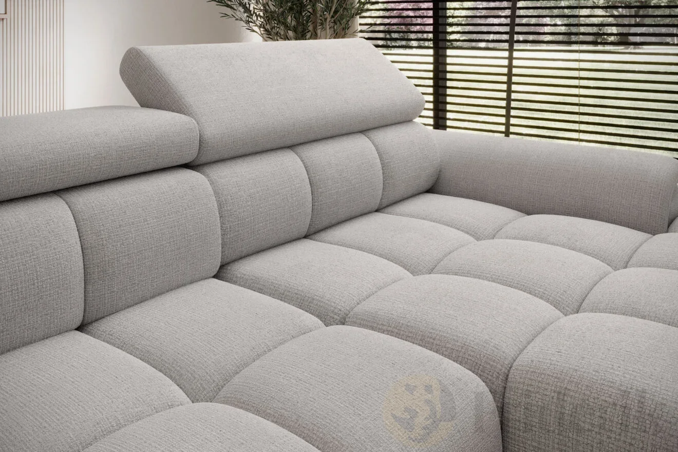 Ecksofa ALVIN S mit elektrischer Sitztiefenverstellung und Relax-Kopfstützen - Cremona 04, Hellgrau