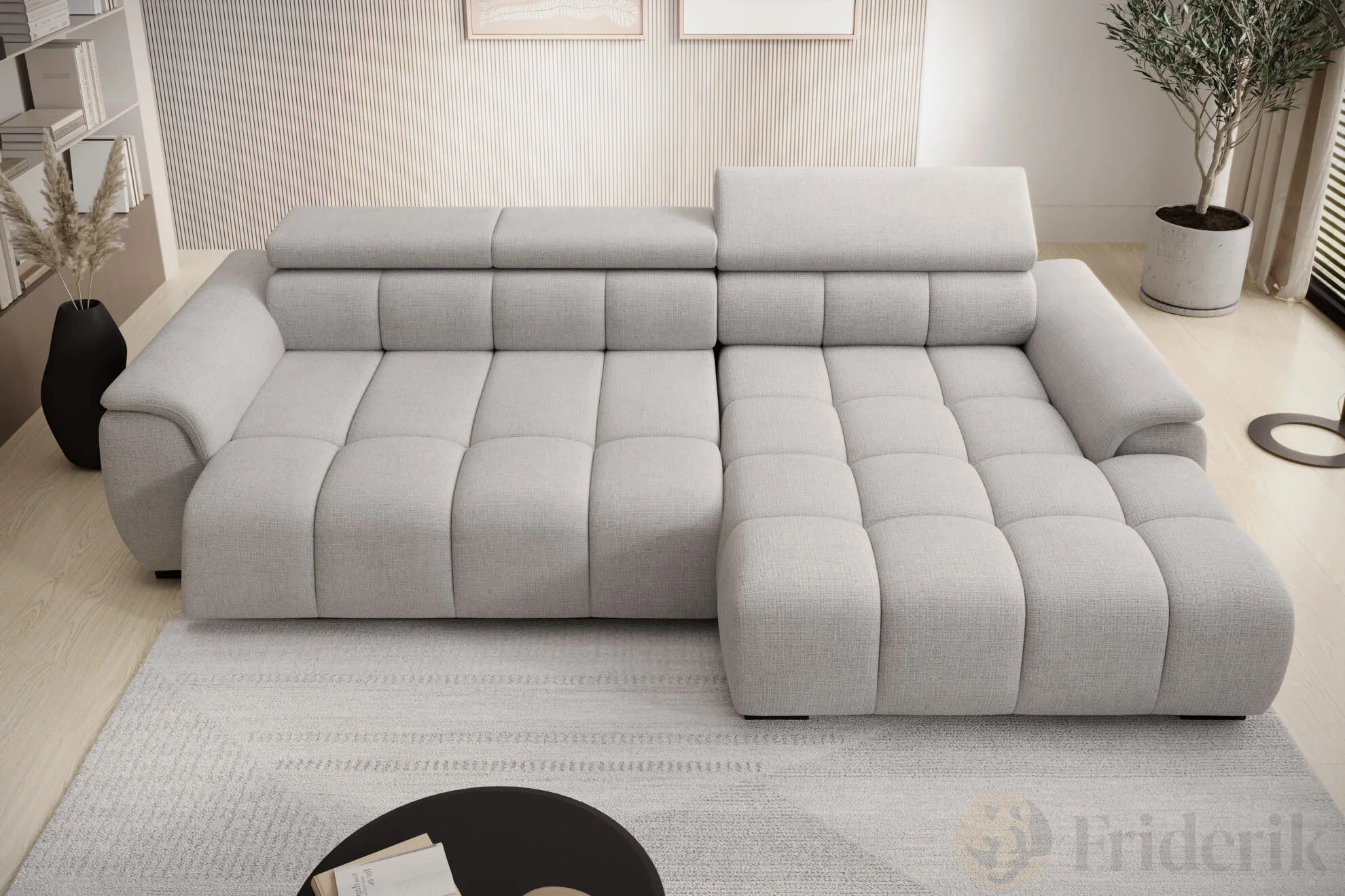 Ob nach einem langen Arbeitstag, beim Lesen am Wochenende oder bei einem gemütlichen Abend mit Familie und Freunden – ALVIN passt sich Ihrer Situation an. Mit einem Knopfdruck verändern Sie die Sitztiefe und verwandeln Ihr Sofa in eine komfortable Relaxzone. Erhältlich in drei Größen (S, L und XL), lässt sich dieses Ecksofa perfekt an unterschiedliche Wohnräume anpassen und wird schnell zum stilvollen Mittelpunkt Ihres Wohnzimmers.