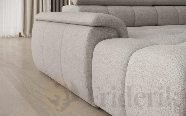 Das Ecksofa ALVIN verbindet modernes Design mit innovativer Funktionalität. Klare Linien, eine charakteristische abgerundete Armlehne und elegante Steppungen verleihen diesem Sofa eine besondere Ausstrahlung. Gleichzeitig sorgt die durchdachte Konstruktion – bis zum Boden reichende Form, verstellbare Kopfstützen und elektrisch regulierbare Sitztiefe – für ein außergewöhnlich komfortables Sitz- und Relaxerlebnis.