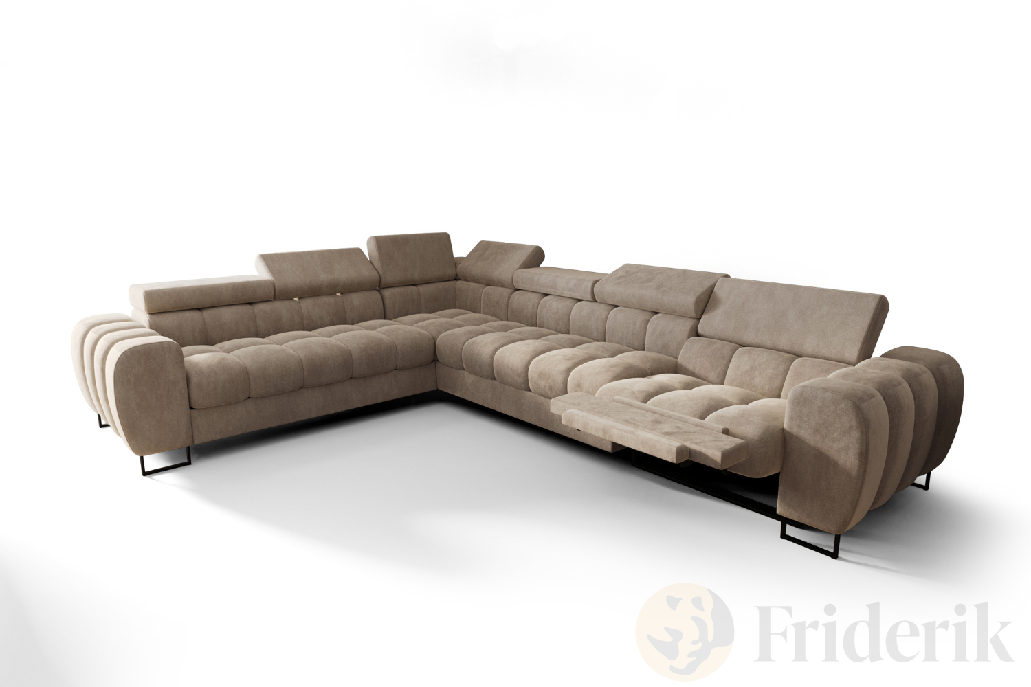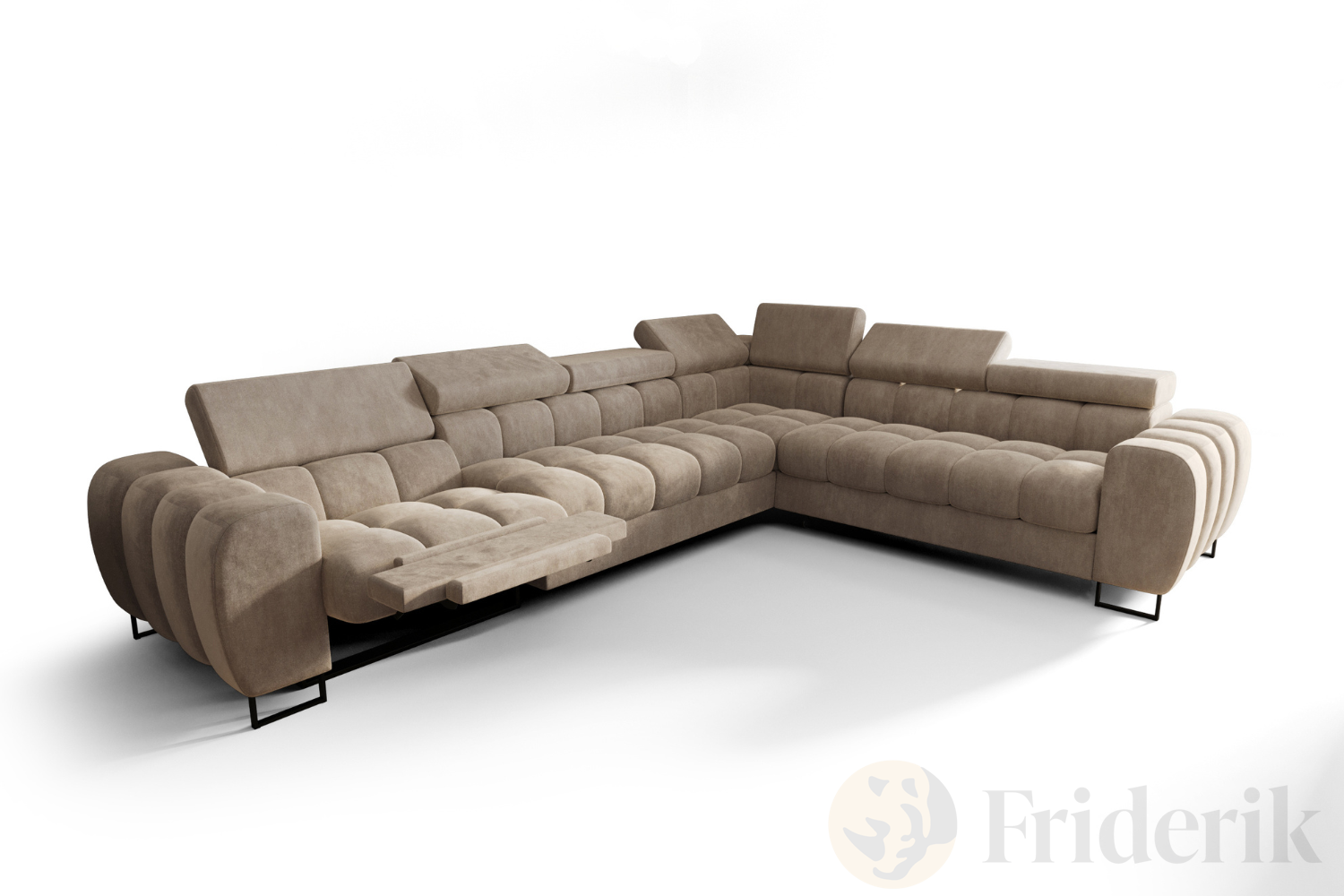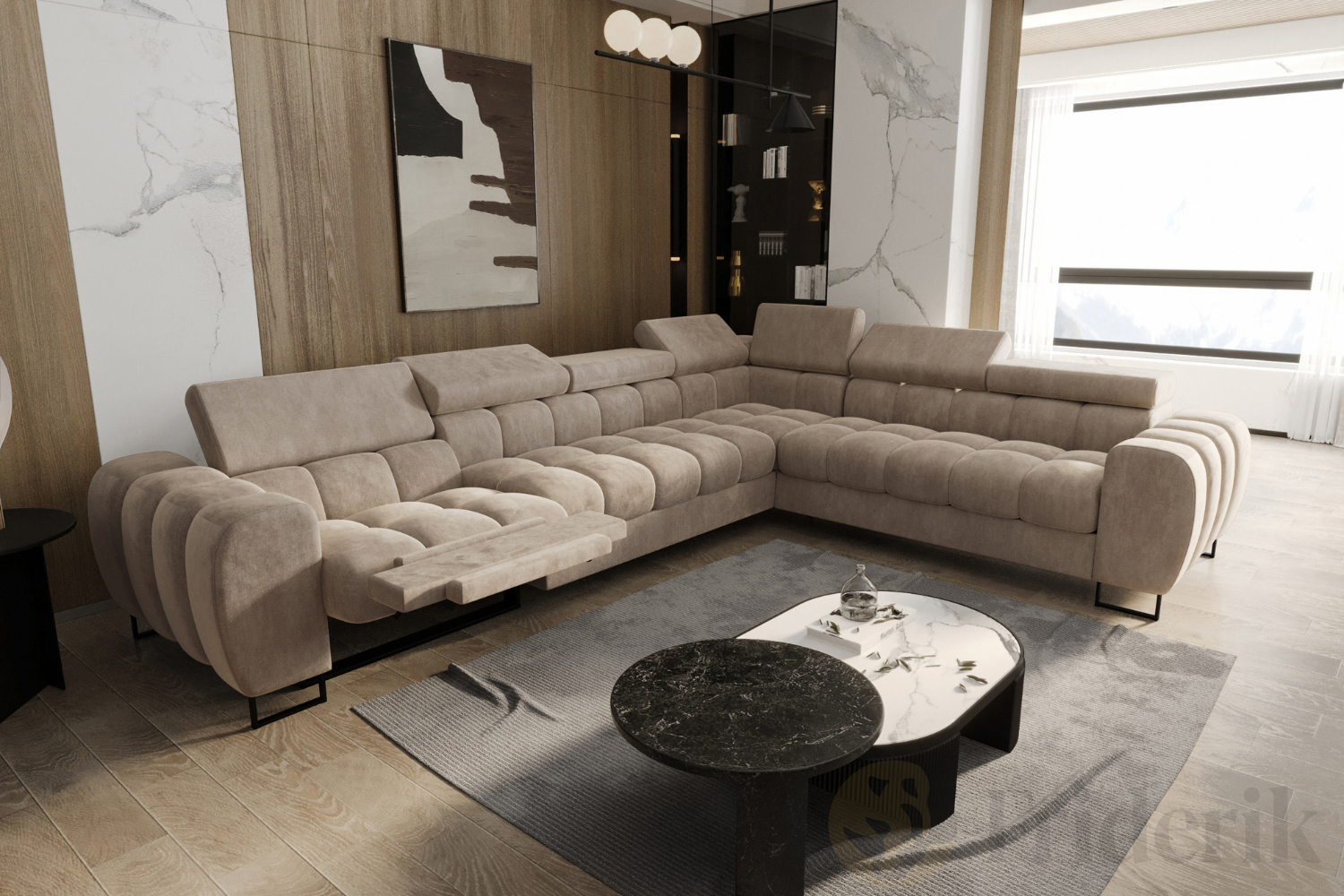 Ecksofa Aspen Max Relax 330×260 cm mit Schlaffunktion & Relax, Terra Stoff - verstellbare Kopfstützen - Liegefläche 117x190 cm, Beige (Terra 13)