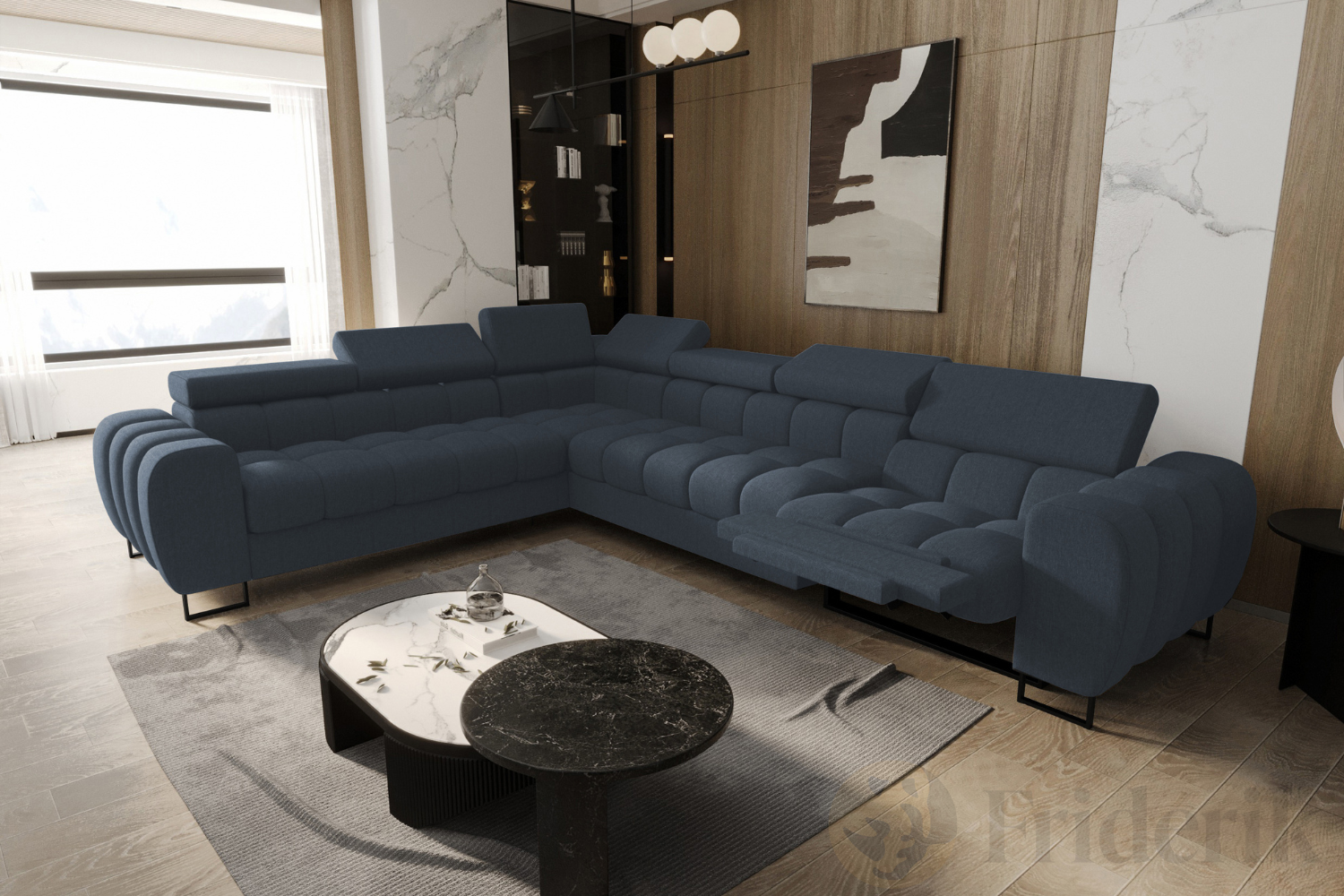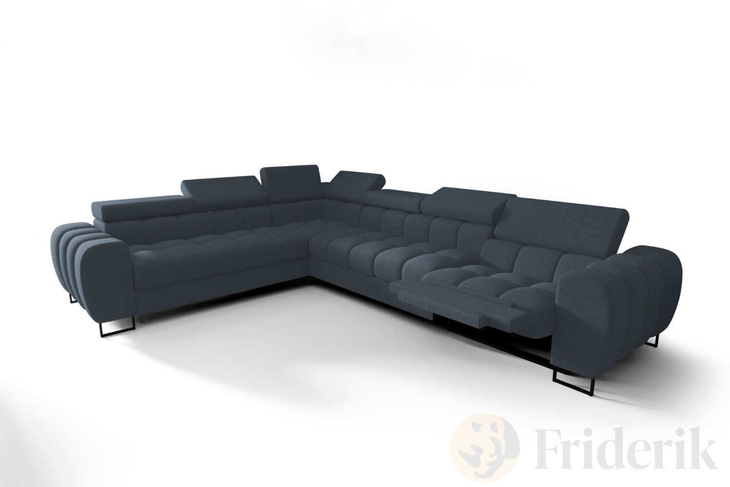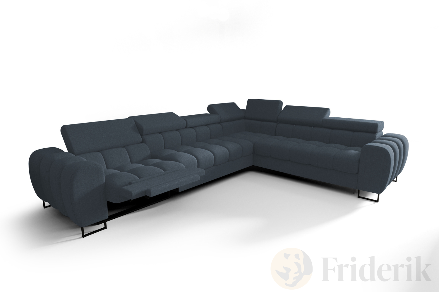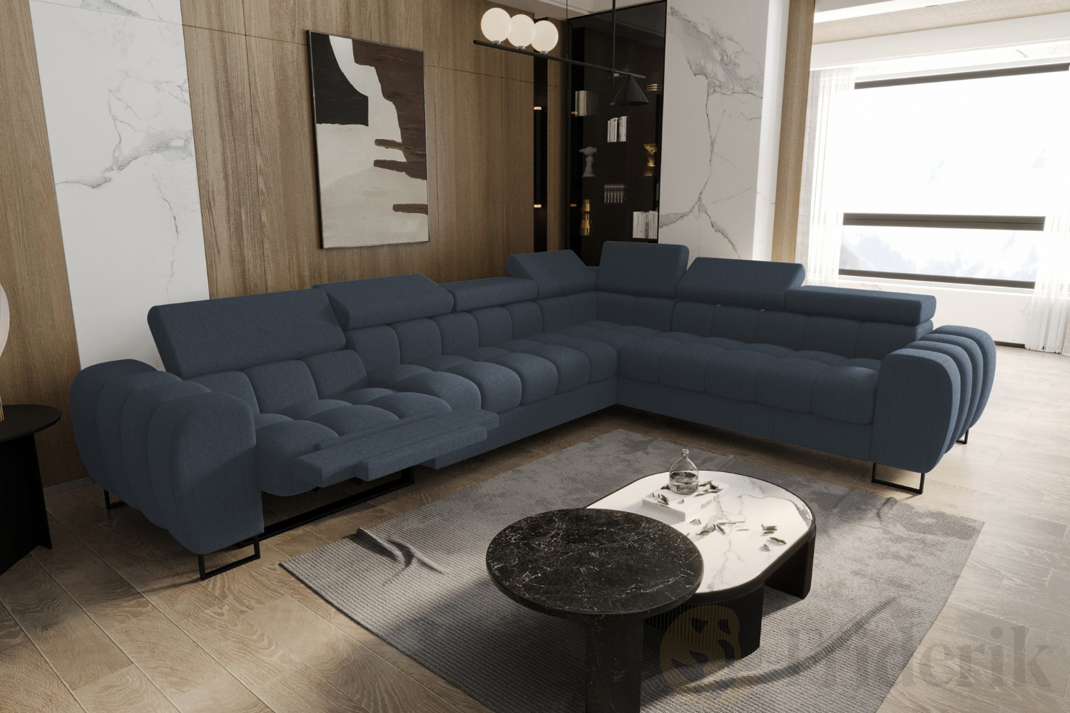 Ecksofa Aspen Max Relax 330×260 cm mit Schlaffunktion & Relax, verstellbare Kopfstützen, Liegefläche 117x190 cm, Blau (Gemma 77)
