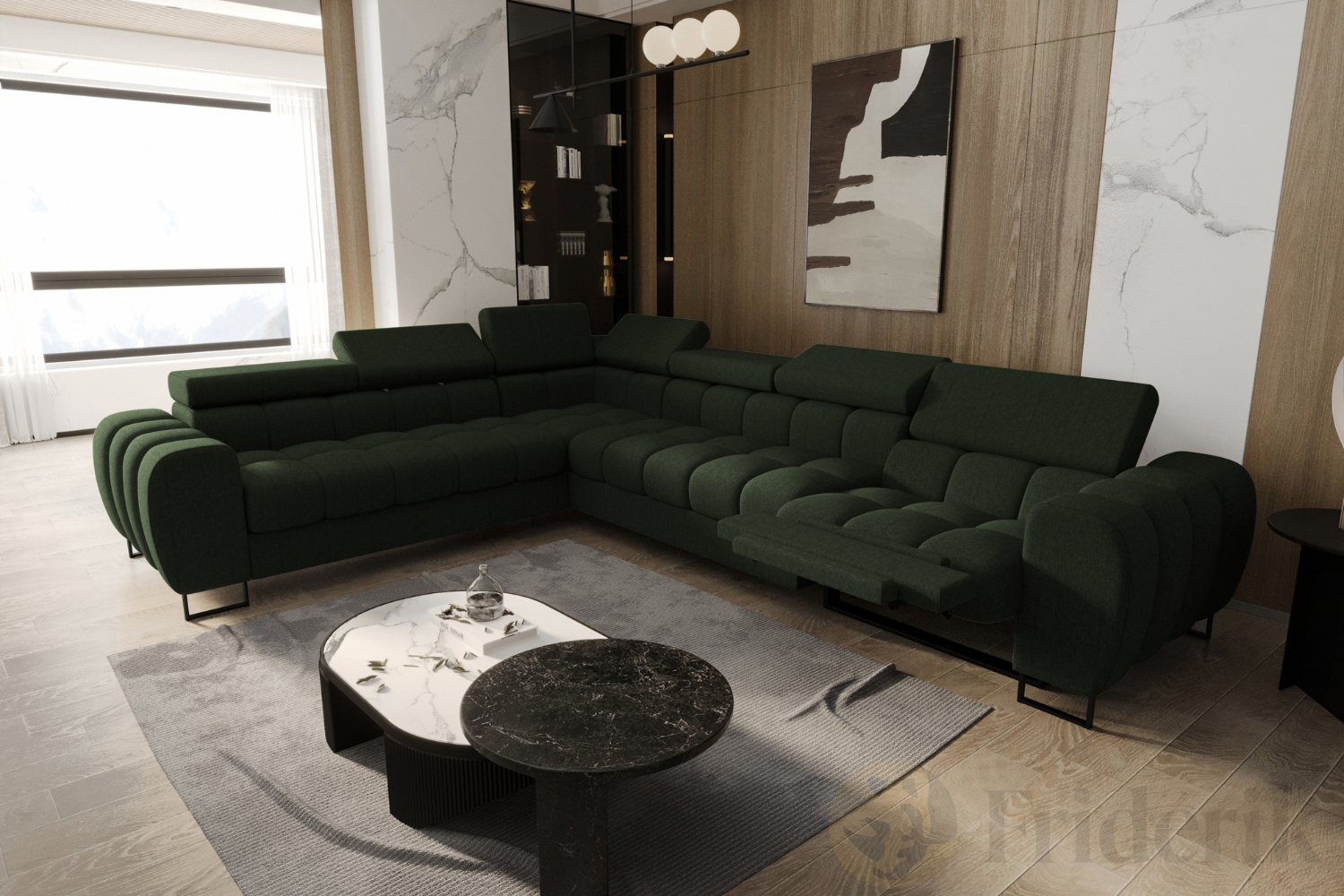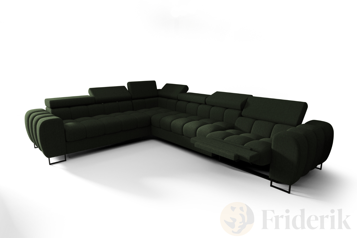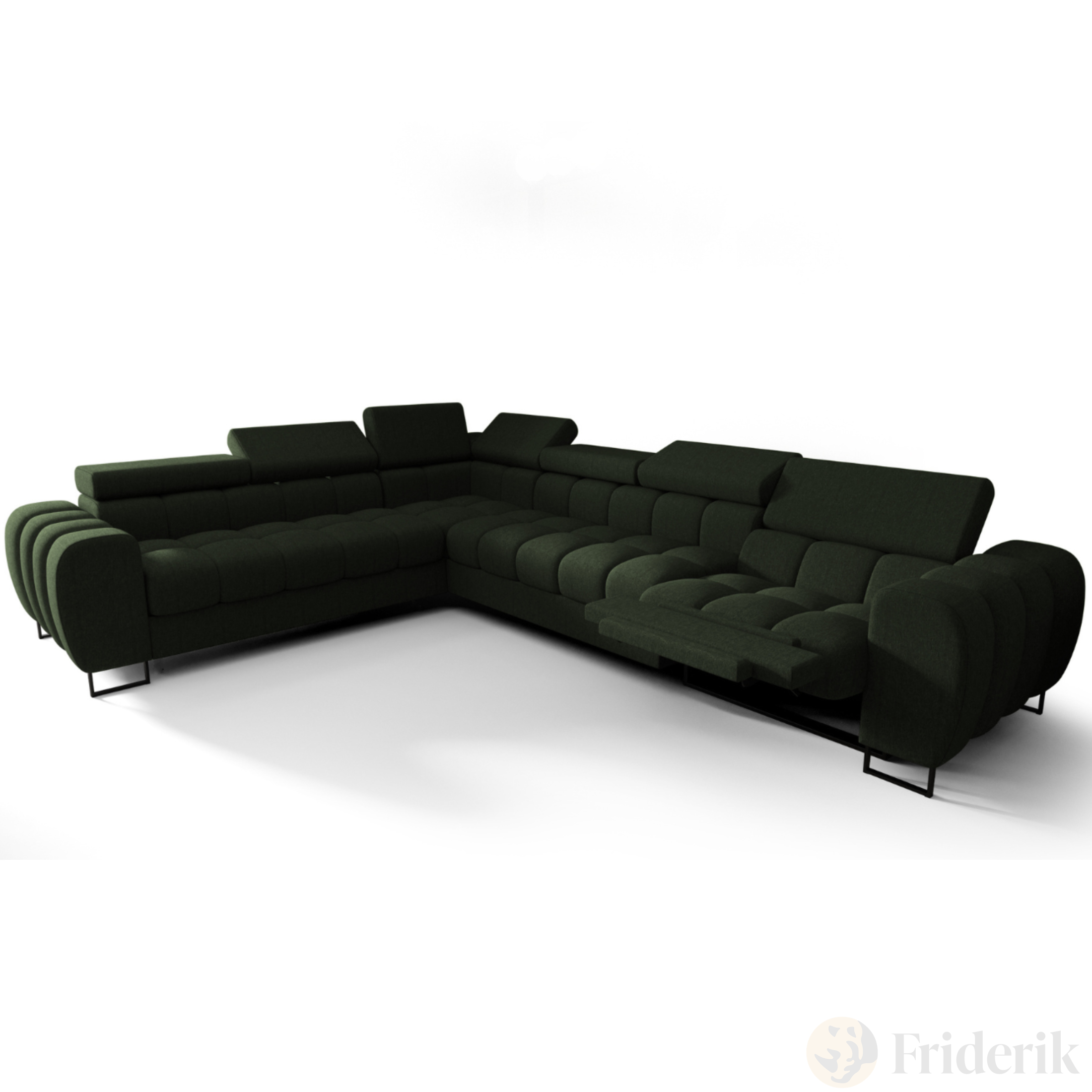 Ecksofa Aspen Max Relax 330×260 cm mit Schlaffunktion & Relax, verstellbare Kopfstützen, Liegefläche 117x190 cm, Flaschengrün (Gemma 39)