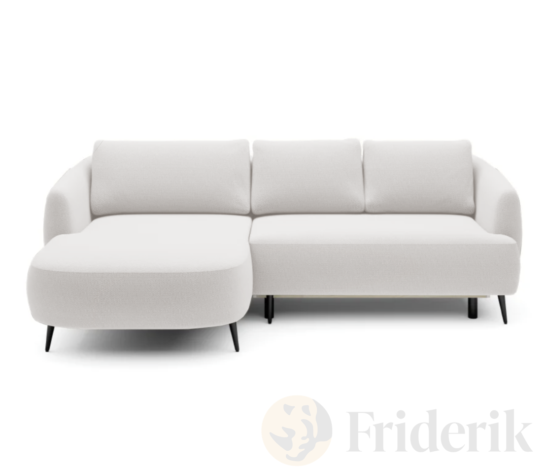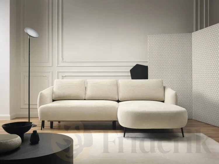 Stell dir einen Abend mit Gästen vor – du servierst das Dessert, alle sind zufrieden, aber du merkst: jemand bleibt über Nacht. Kein Problem – du klappst dein Sofa CANDY in Sekundenschnelle aus und verwandelst dein Wohnzimmer in ein gemütliches Gästezimmer. Das Ecksofa CANDY wurde genau für solche Momente geschaffen. Es verbindet durchdachte Funktionalität mit einem sanft abgerundeten, stilvollen Design, das in jedes moderne Interieur passt. Die elegante Ottomane, die weichen Kissen und die klare Formensprache machen CANDY zu einem echten Blickfang – auch mitten im Raum, denn die Rückseite ist vollständig gepolstert.