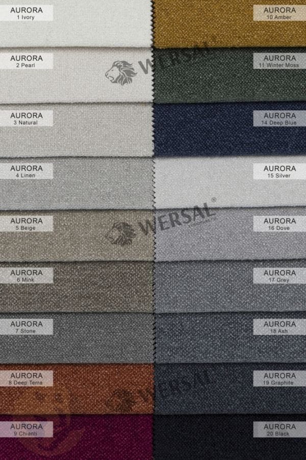 Aurora ist ein robuster und langlebiger Stoff mit hoher Abriebfestigkeit und einer glatten Oberfläche. Dank der Cleanaboo-Technologie weist der Stoff verschüttete Flüssigkeiten ab, wodurch er ideal für Haushalte mit Kindern und Haustieren geeignet ist. Die PETPROOF-Kennzeichnung garantiert zusätzliche Widerstandsfähigkeit gegen Kratzer, was Aurora zu einer ausgezeichneten Wahl für Tierhalter macht.