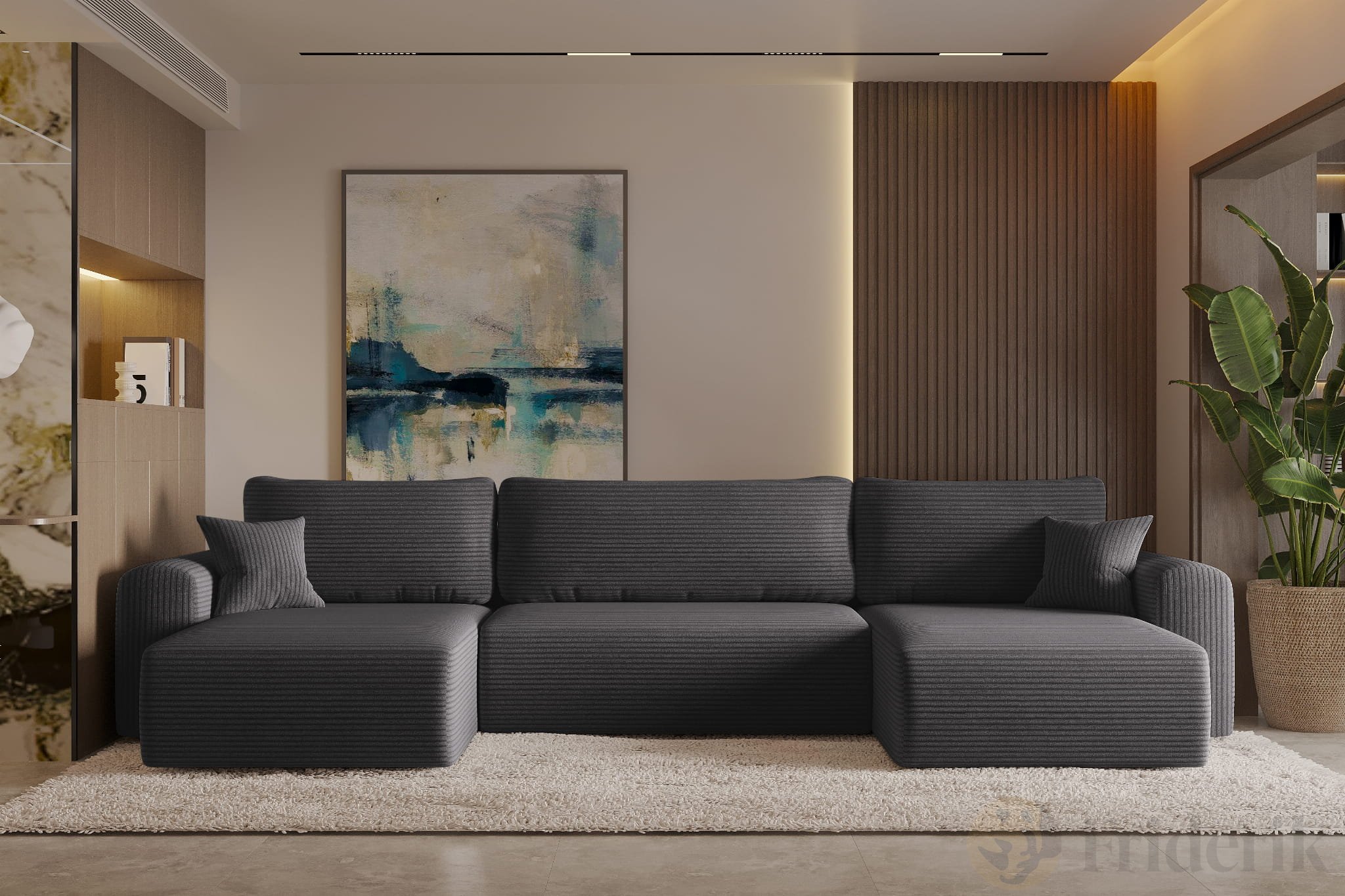 Das Ecksofa CAPRI U mit Schlaffunktion ist die perfekte Wahl für alle, die Wert auf Komfort und Funktionalität legen. Mit seiner großzügigen Sitzfläche von 362 cm Breite und den gemütlichen Polstern wird es schnell zum Mittelpunkt jedes Wohnzimmers. Durch die universelle Konfiguration passt es sich flexibel an verschiedene Raumgestaltungen an. Dank seiner Schlaffunktion lässt sich das Sofa zudem in ein komfortables Gästebett verwandeln.