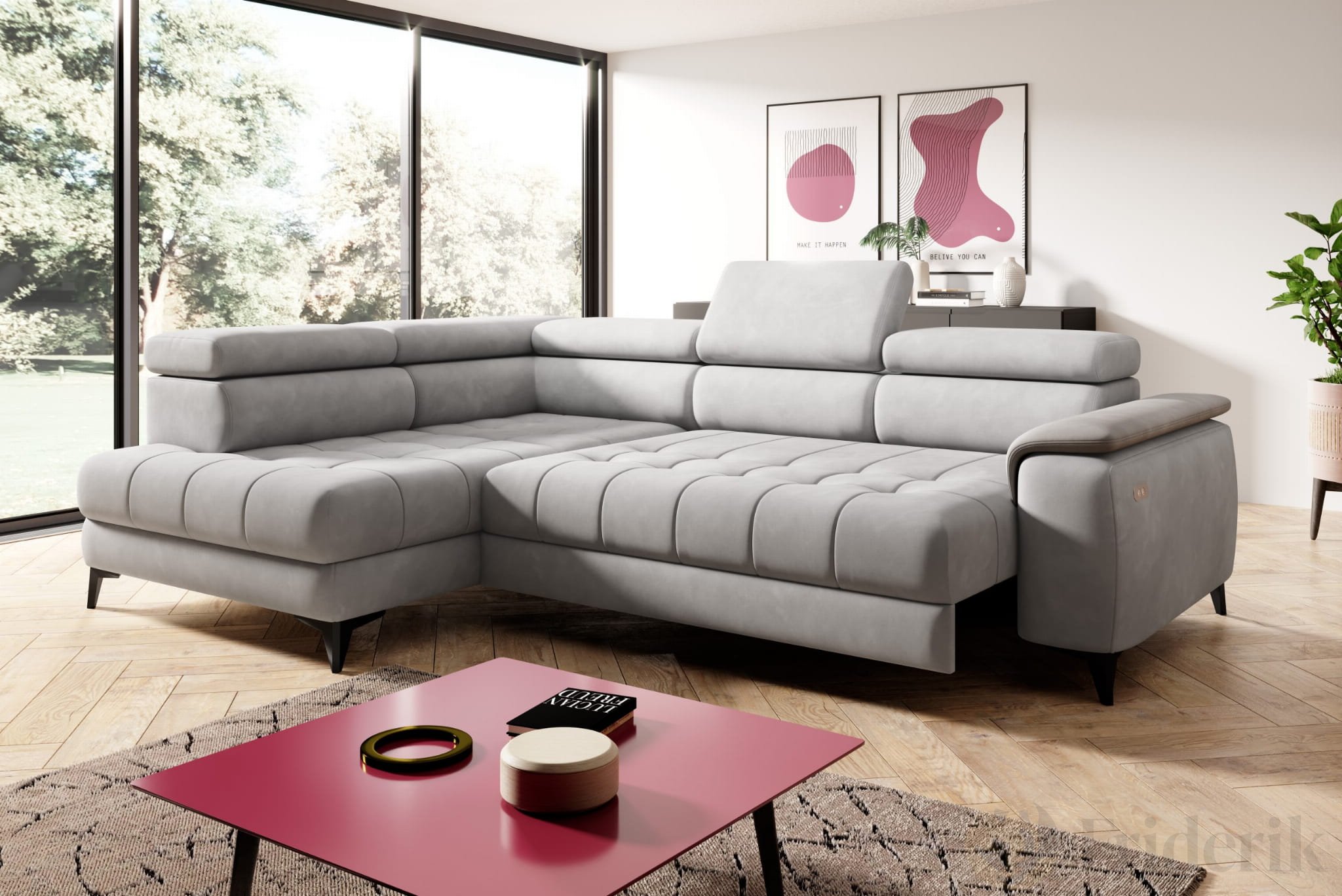 Stell dir einen entspannten Sonntagnachmittag vor – dein Lieblingsbuch in der Hand, ein Kaffee in Reichweite, und du versinkst in purem Komfort. Genau dafür wurde das Ecksofa CHIVAS entworfen. Mit elektrisch verstellbarer Sitztiefe und fünf individuell einstellbaren Kopfstützen passt sich das Sofa deinem Alltag perfekt an. Ob gemütlicher Fernsehabend, entspannter Plausch mit Freunden oder einfach ein Moment für dich – CHIVAS bietet dir die Freiheit, dein Wohnzimmer neu zu erleben. Dank seiner gepolsterten Rückseite kann es frei im Raum stehen – als stilvoller Mittelpunkt oder funktionaler Raumteiler.