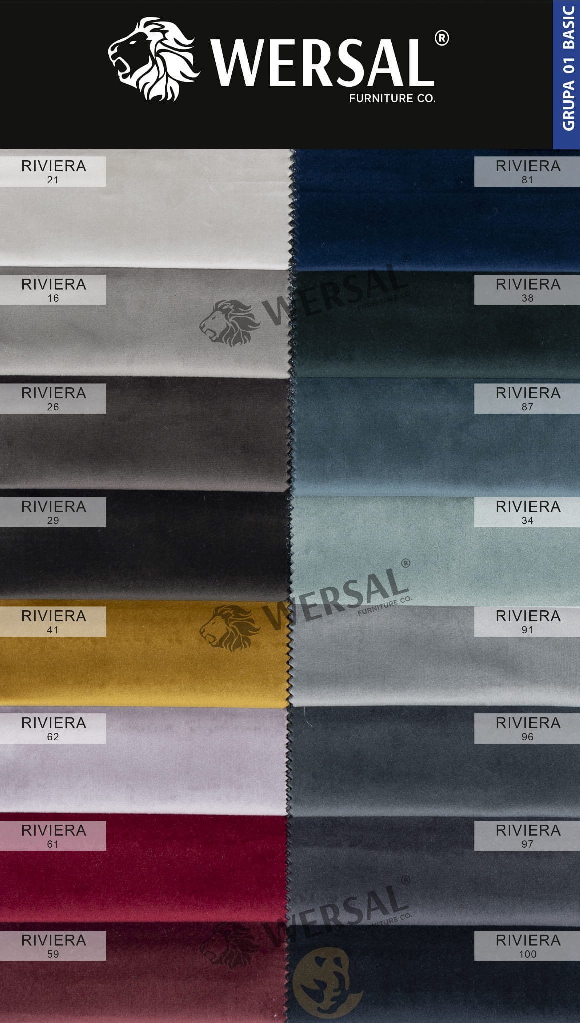RIVIERA - gehört zur Gruppe der Samtstoffe. Der Stoff ist stark,widerstandsfähig gegen Beschädigungen und gleichzeitig sehr elegant. Schon die Materialoptik sticht ins Auge, der zarte Seidenmatt lässt den Stoff leicht schimmern und erhält einen eleganten Charakter. Die samtigen Mikrohaare des Materials schützen sich sehr effektiv vor Verschmutzung und nehmen keinen Schmutz auf. Das Material bedarf keiner besonderen Pflege, eine Standardreinigung ist ausreichend. Bei Verschmutzung empfehlen wir, etwas graue Seife in lauwarmem Wasser aufzulösen und anschließend mit einem Schwamm vorsichtig abzuwischen.