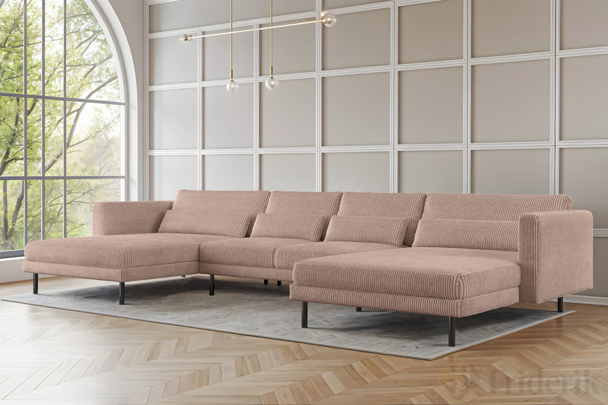 Ecksofa DANI U – Großes modulares Familiensofa in U-Form, bequeme Couch für Wohnzimmer mit Cordstoff POSO, Altrosa Poso 52