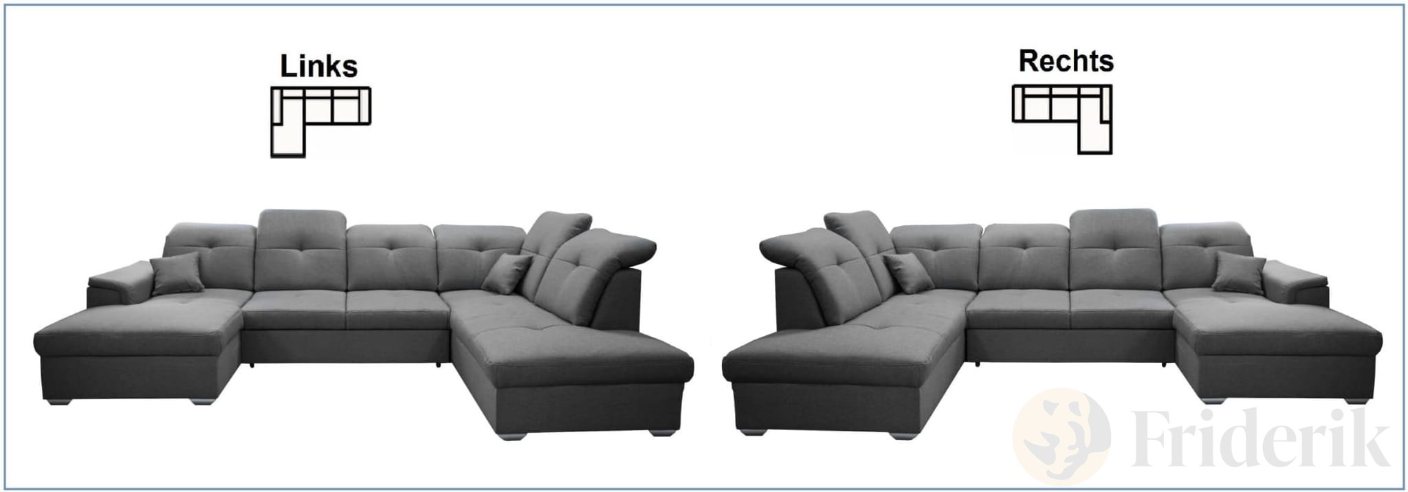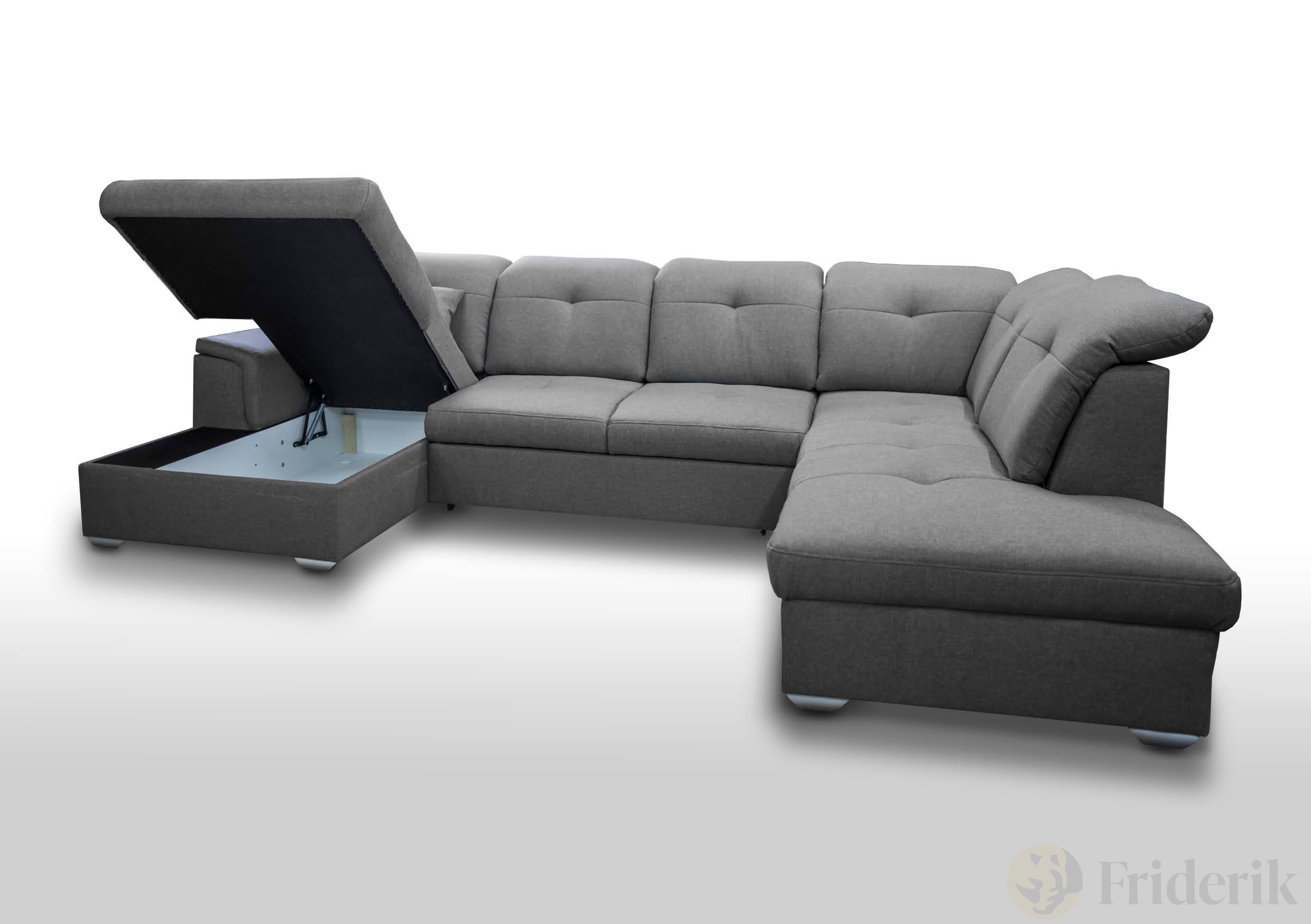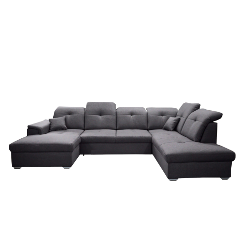Ecksofa DAVIO U mit Schlaffunktion und Bettkasten und verstellbare Kopfstützen, Dunkelgrau