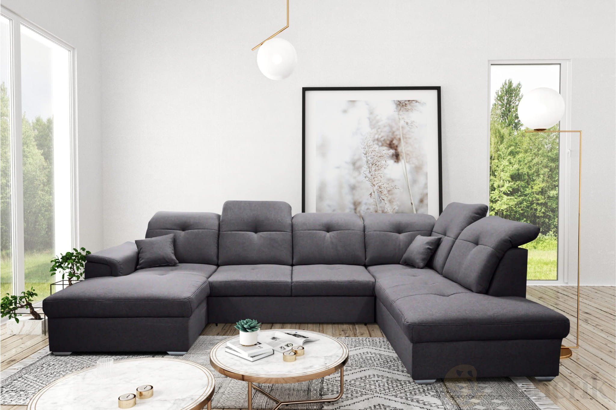 Stell dir vor: Ein langer Tag geht zu Ende. Du sinkst in weiche Kissen, eine Tasse Tee in der Hand, dein Lieblingsfilm läuft im Hintergrund. Genau für solche Momente wurde das Ecksofa Davio U geschaffen – großzügig, bequem und durchdacht bis ins Detail. Mit seiner modernen U-Form, praktischen Funktionen und hochwertigen Verarbeitung ist es die perfekte Wahl für große Wohnzimmer und gesellige Abende.
