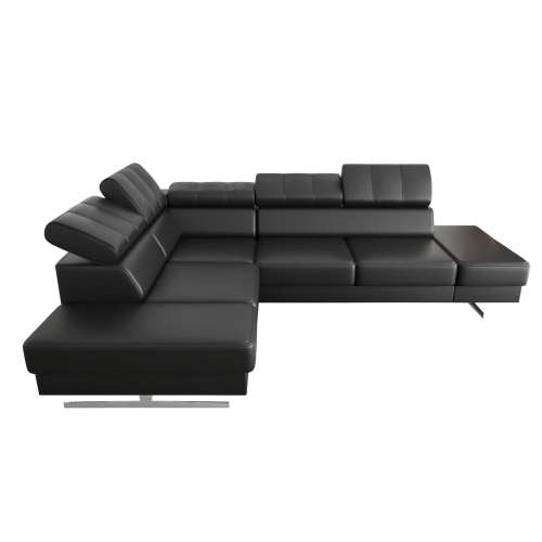Ecksofa EMPORIO Ledersofa 225×300 cm mit verstellbaren Kopfstützen und Designfüßen, Schwarz (K-70)