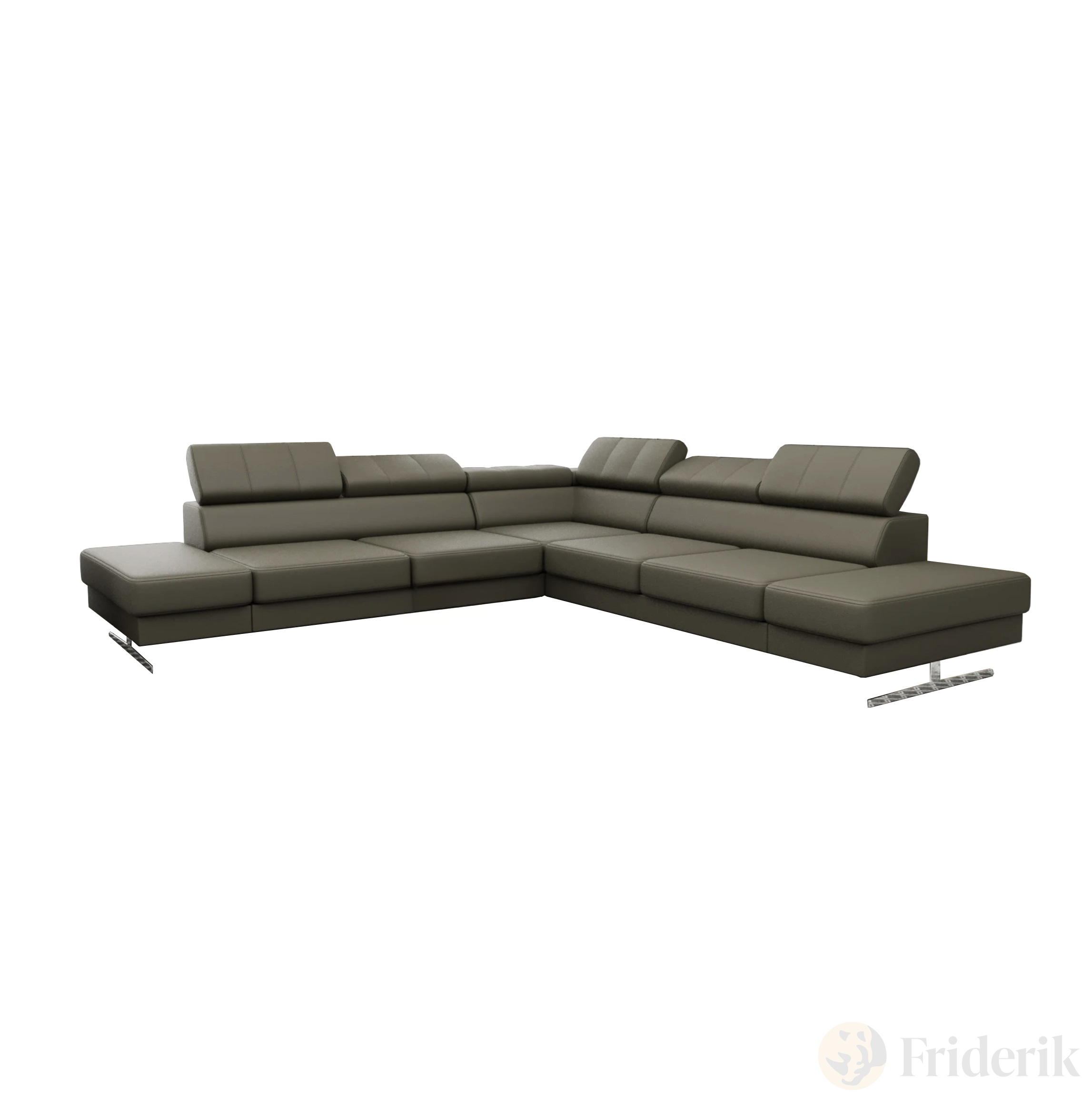 Ecksofa EMPORIO MAX 300×300 cm aus Leder – mit verstellbaren Kopfstützen & hohen Designfüßen, Dunkelgrün (L-05)