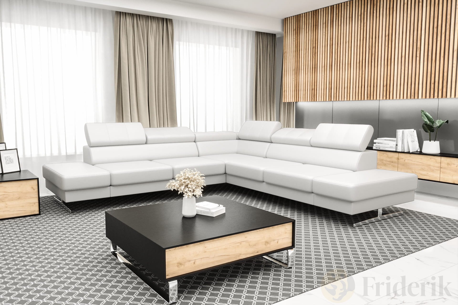 Stell dir einen perfekten Nachmittag vor, an dem du dich entspannt auf einem Sofa zurücklehnst, das sich deinen Bedürfnissen anpasst. Das Ecksofa Emporio Max verbindet modernes Design mit höchstem Komfort und lädt dich ein, jede Pause voll auszukosten. Verstellbare Kopfstützen ermöglichen dir die individuelle Anpassung für deine Lieblingsposition. Die eleganten, 16 cm hohen silbernen Beine verleihen dem Möbelstück Leichtigkeit und zeitlose Eleganz. Die stabile Konstruktion und sorgfältig verarbeitete Details machen das Sofa nicht nur optisch ansprechend, sondern auch besonders langlebig.