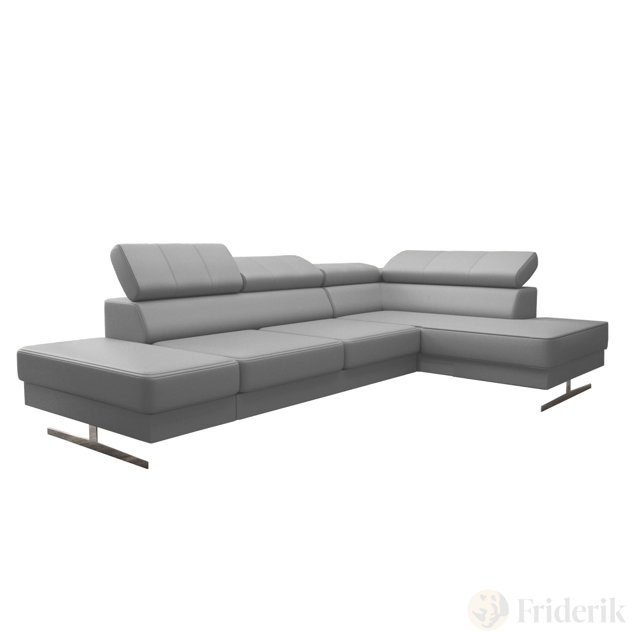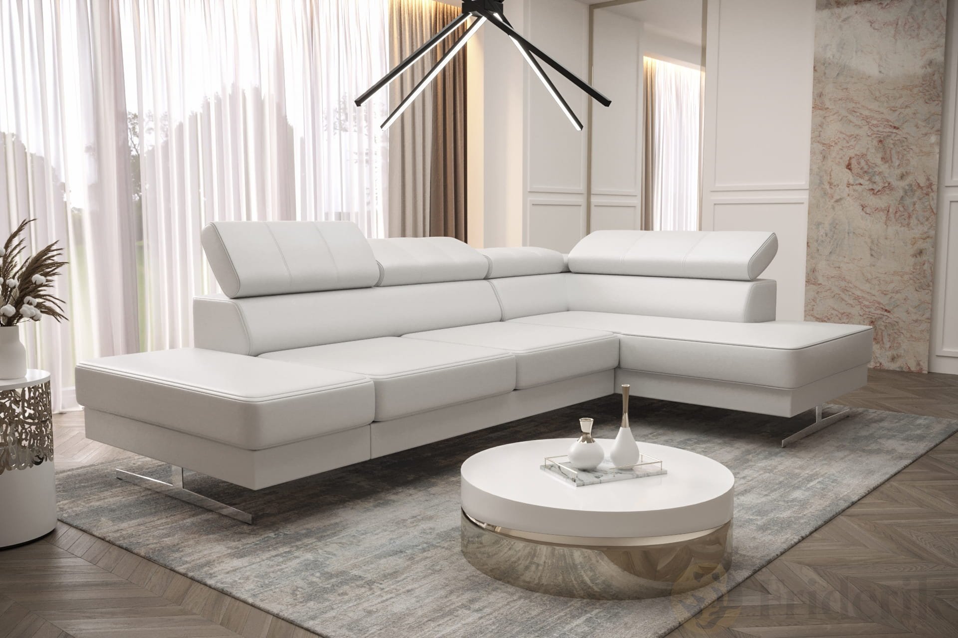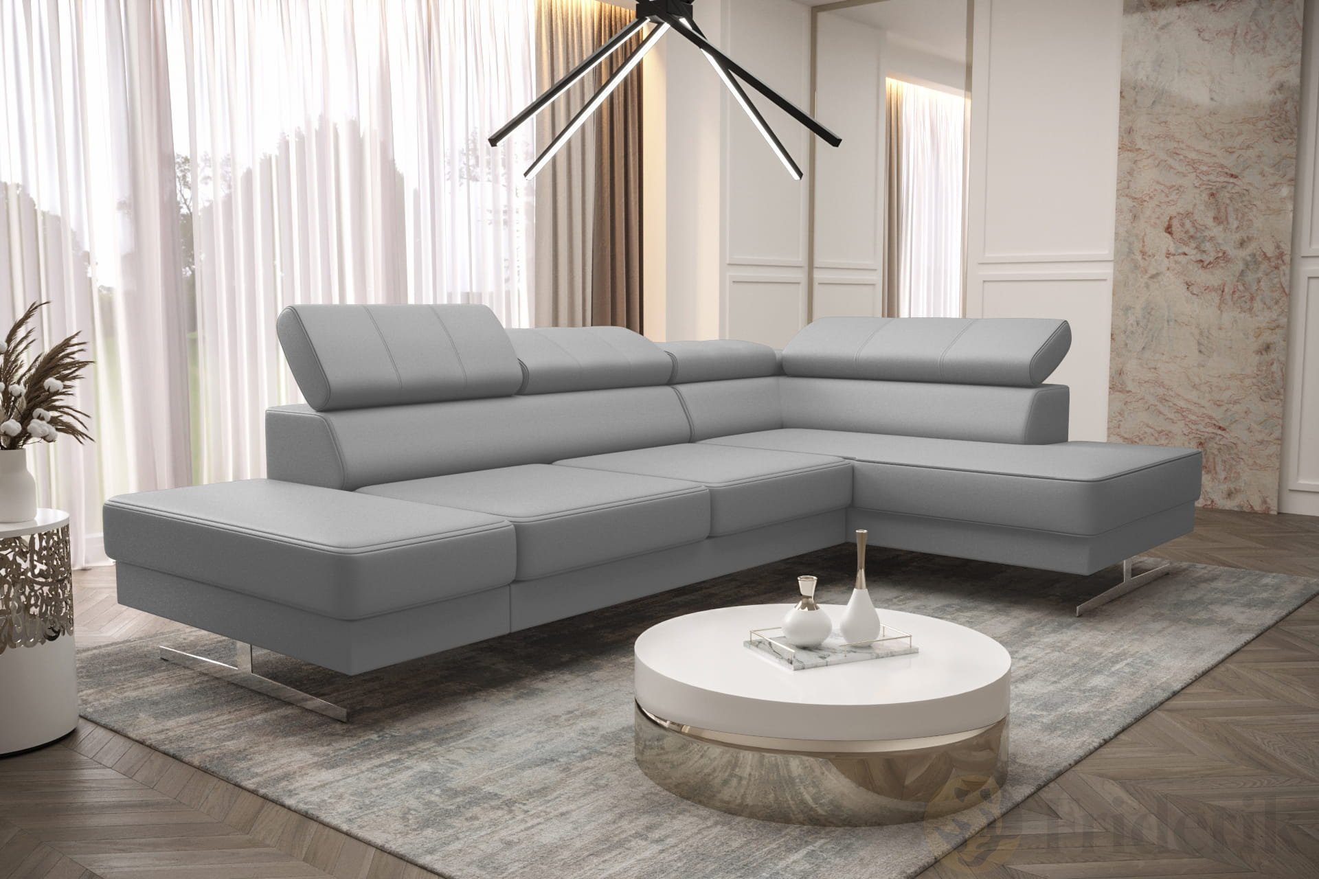 Ecksofa EMPORIO MINI aus Leder 300x180 cm – Ledersofa mit verstellbaren Kopfstützen, modernes Design, verschiedene Fußvarianten, Hellgrau (U-24)
