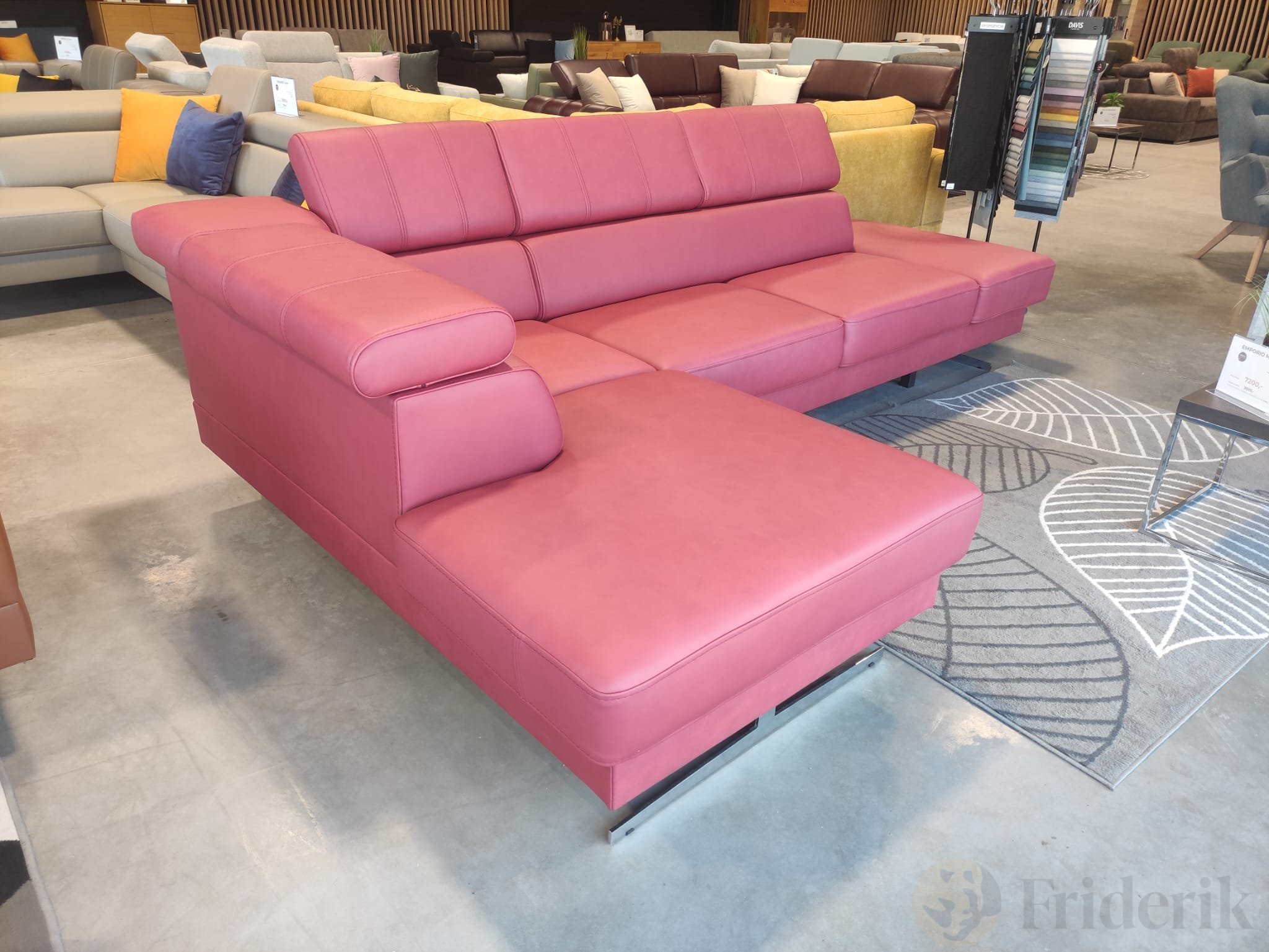 Ecksofa EMPORIO MINI aus Leder 300x180 cm – Ledersofa mit verstellbaren Kopfstützen, modernes Design, verschiedene Fußvarianten, Himbeerrot - Links | Sofort verfügbar