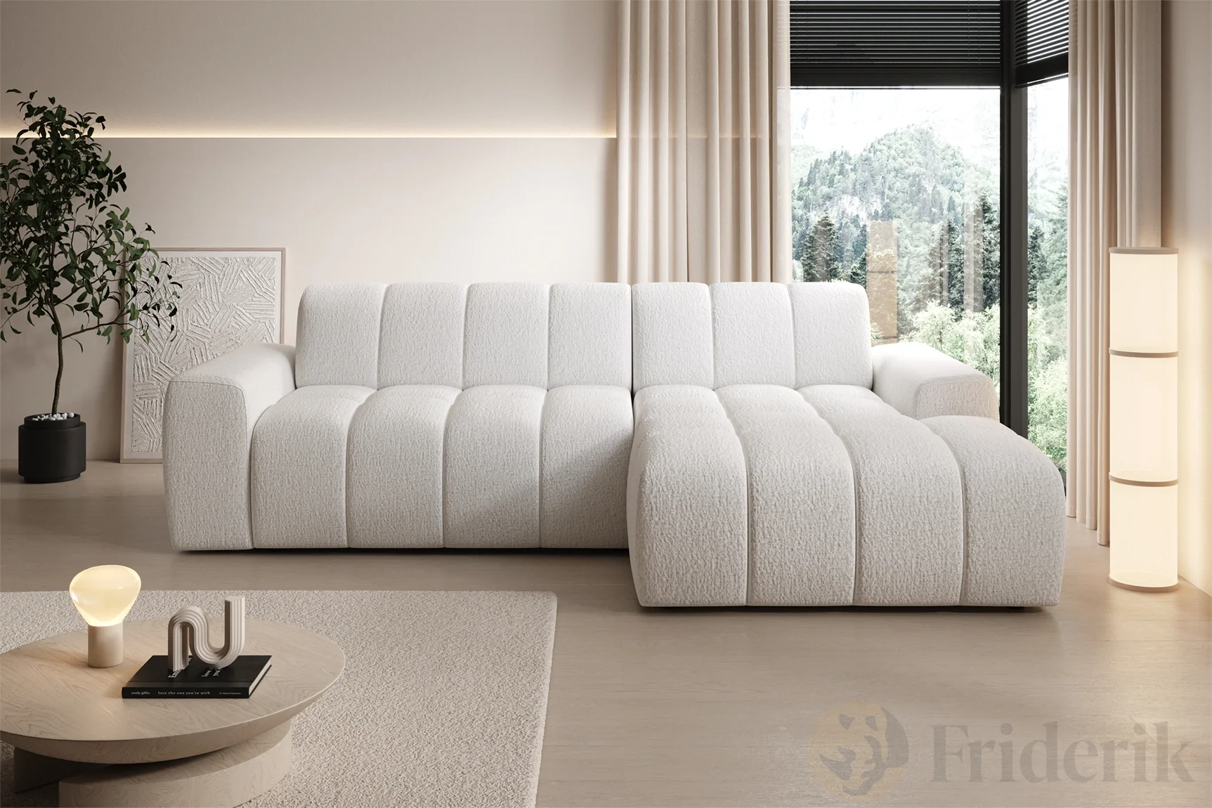 Manchmal braucht es nur ein Möbelstück, um einem Raum Charakter zu verleihen. Das Ecksofa FABIO ist genau so ein Statement. Klare Linien, eine minimalistische Form und elegante vertikale Steppungen schaffen ein Design, das zeitlos und gleichzeitig modern wirkt.