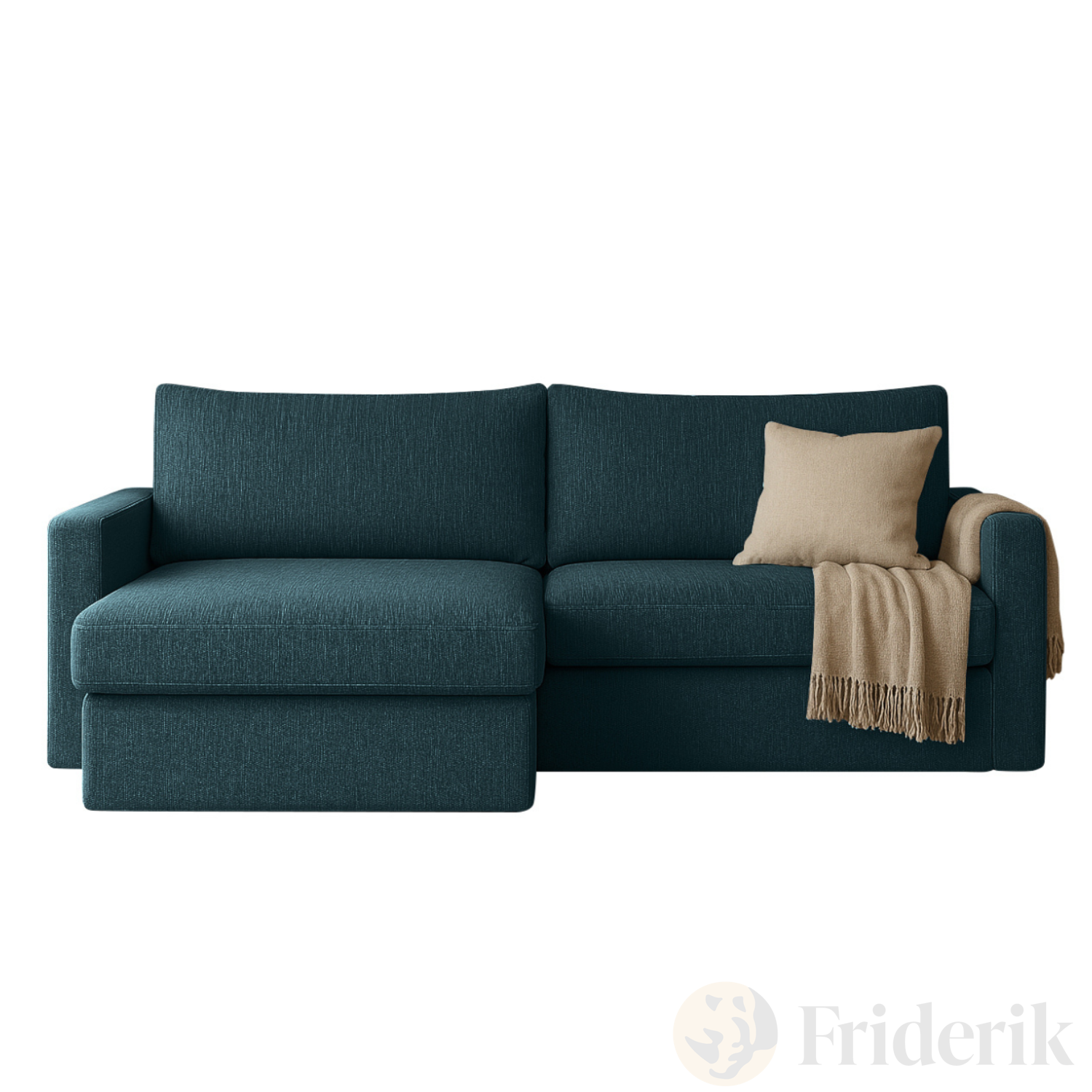 Ecksofa FARO MINI – kompaktes Schlafsofa mit Stauraum, leichter Konstruktion, Faro Stoff, Petrolblau, Faro 15