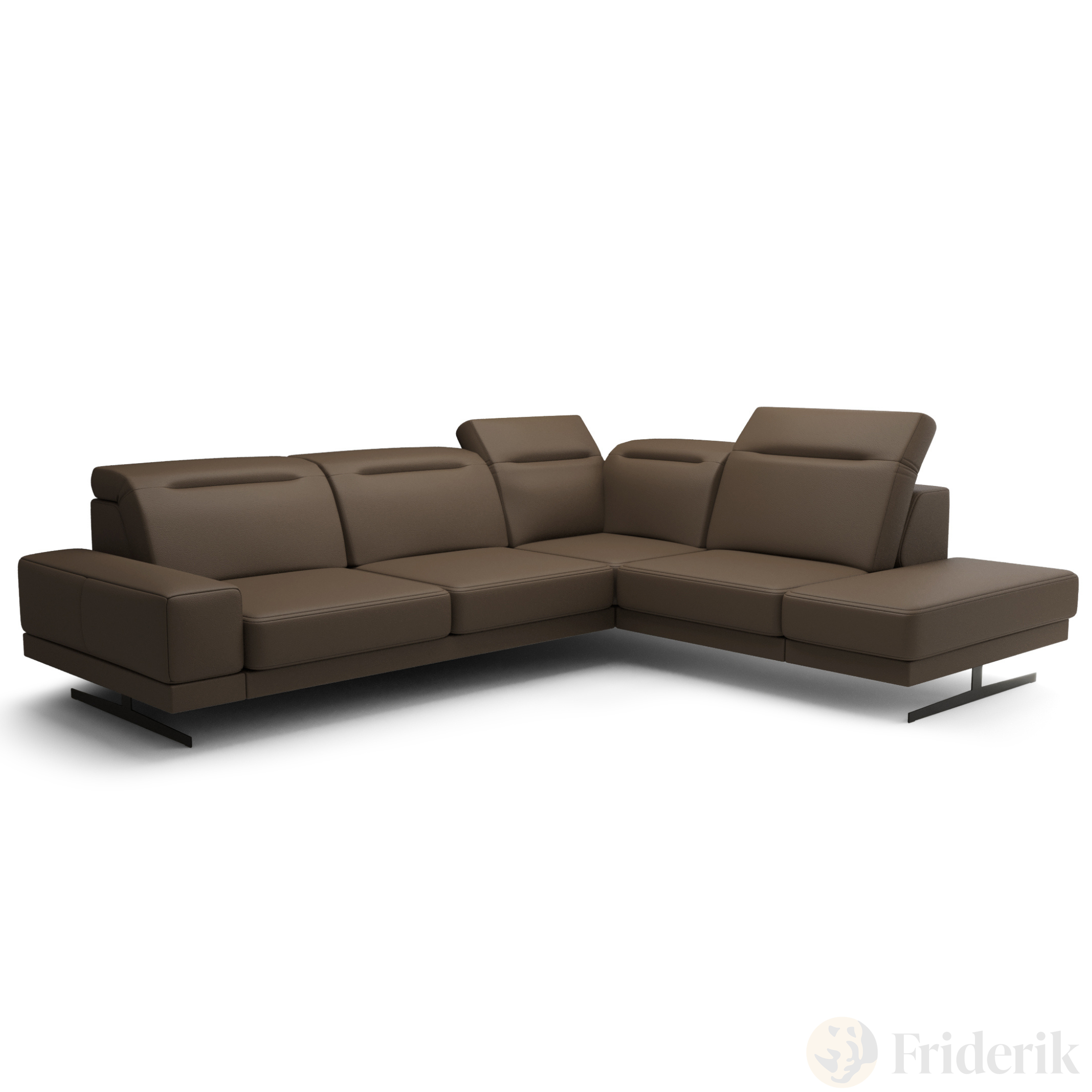 Ecksofa Fiore 265 × 220 cm mit verstellbaren Kopfstützen und T35-Schaum – Echtleder U-16, Toffee Braun