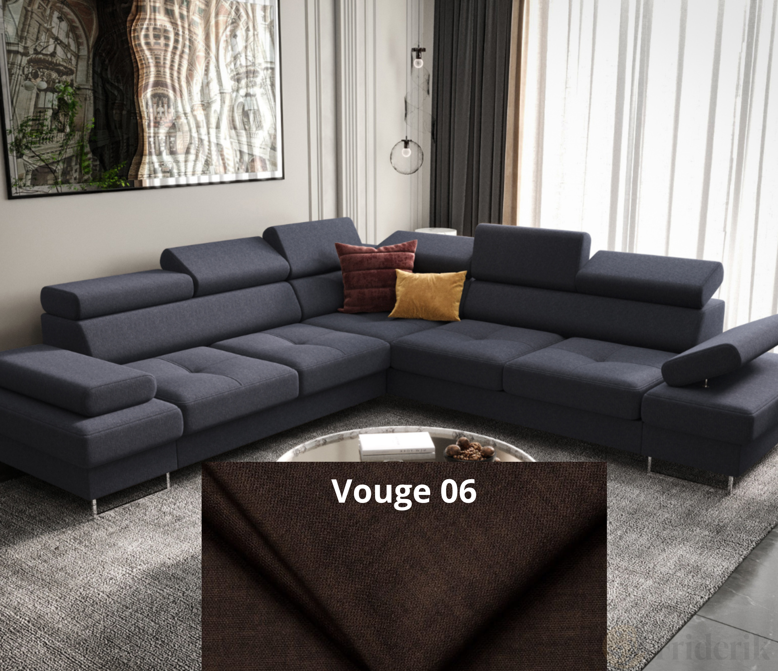 Ecksofa Galaxy MAX 280×280 cm mit Schlaffunktion, Verstellbare Kopfstützen, Bettkasten - Stoff: Vouge 6