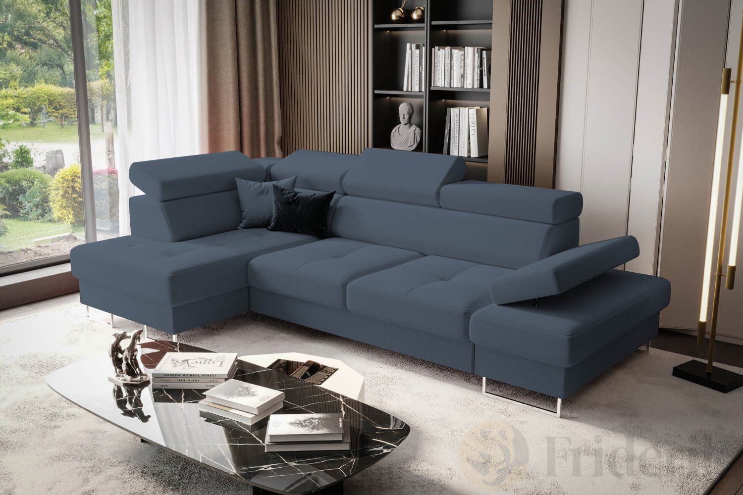 Ecksofa Galaxy Mini 170×280 mit Schlaffunktion & Bettkasten, verstellbare Kopfstützen & Armlehne, Stoff Gemma, Dunkelblau (Gemma 77)