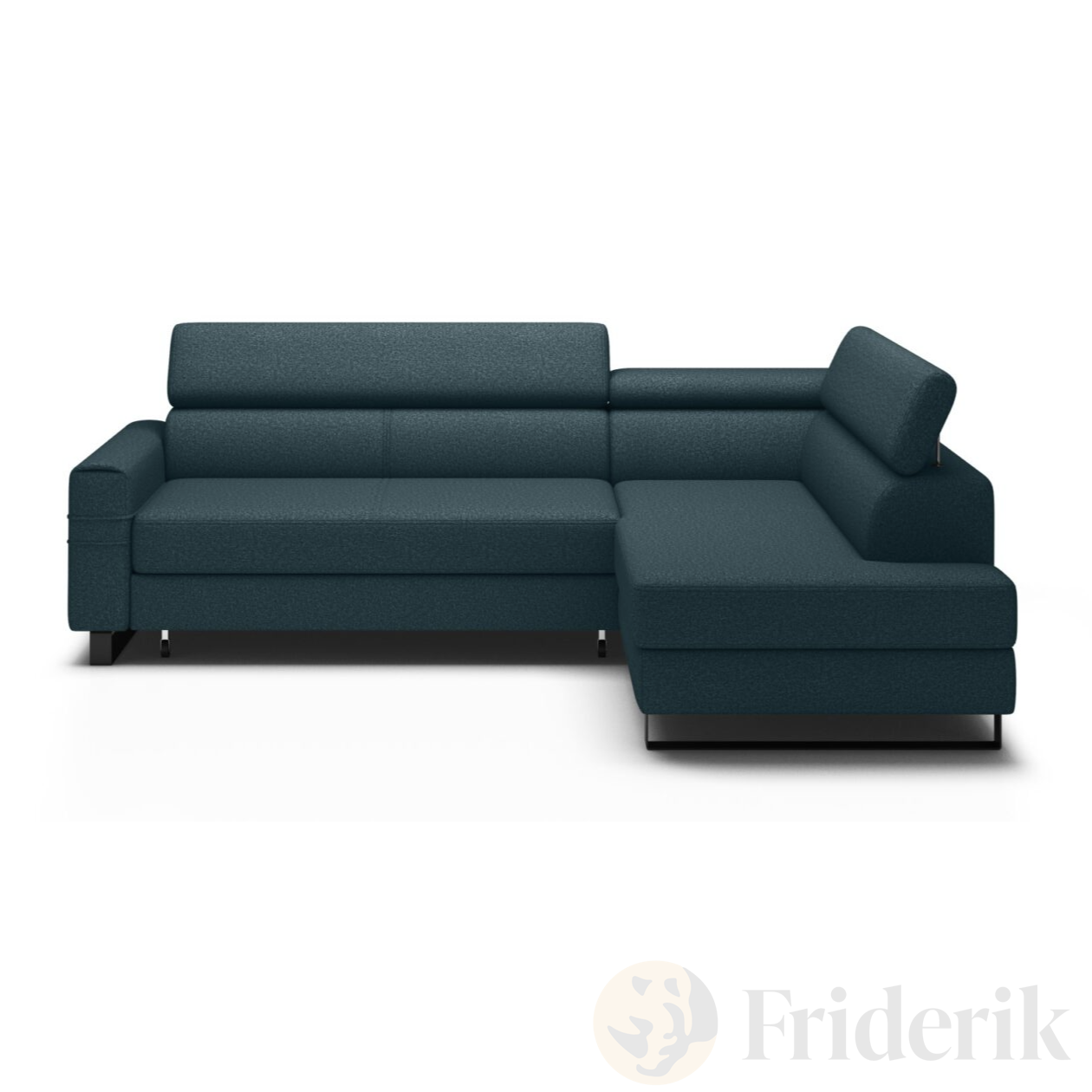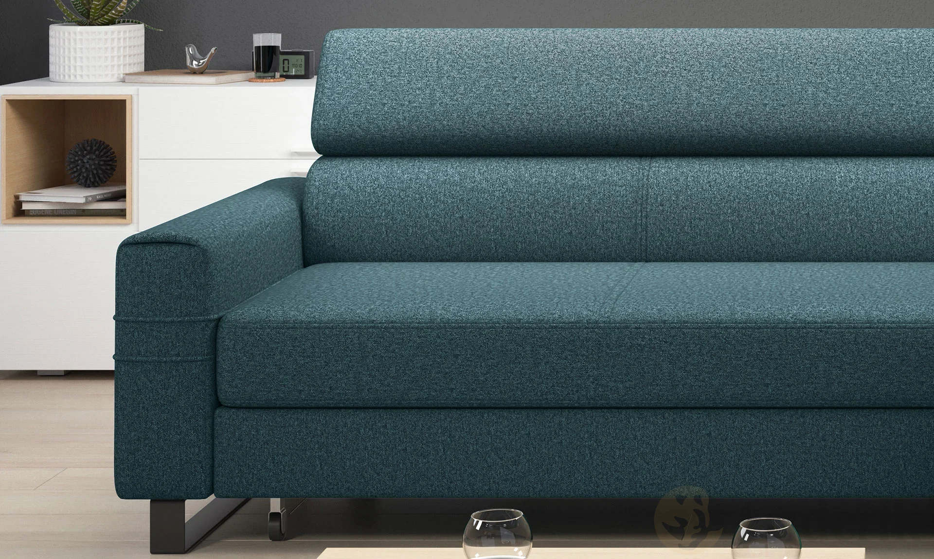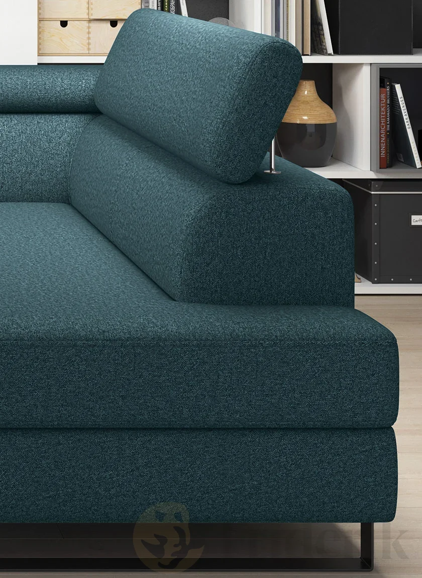 Stell dir vor, du kommst nach einem langen Tag nach Hause, nimmst Platz auf deinem Sofa und lehnst den Kopf entspannt an eine verstellbare Kopfstütze. Genau dafür wurde das Ecksofa LIVIO geschaffen – eine perfekte Kombination aus stilvollem Design und durchdachter Funktionalität. Die klaren Linien, dezenten Ziernähte und das elegante Metallgestell machen es zum echten Blickfang in deinem Wohnzimmer. Gleichzeitig sorgt die Schlaffunktion mit großzügigem Bettkasten für praktischen Mehrwert – ideal für Gäste oder entspannte Filmabende.