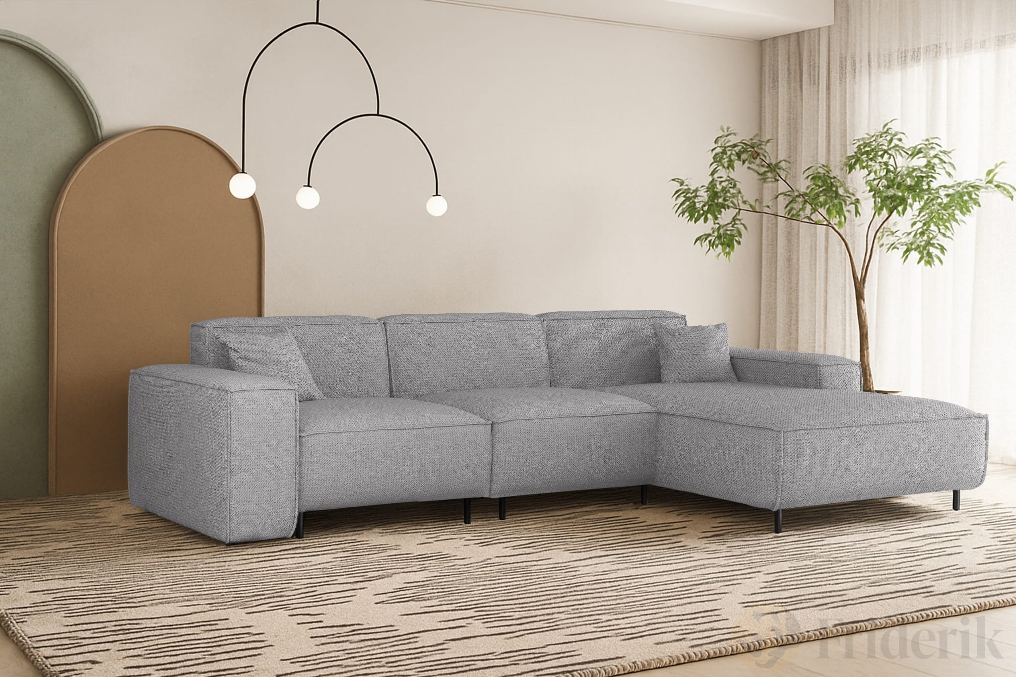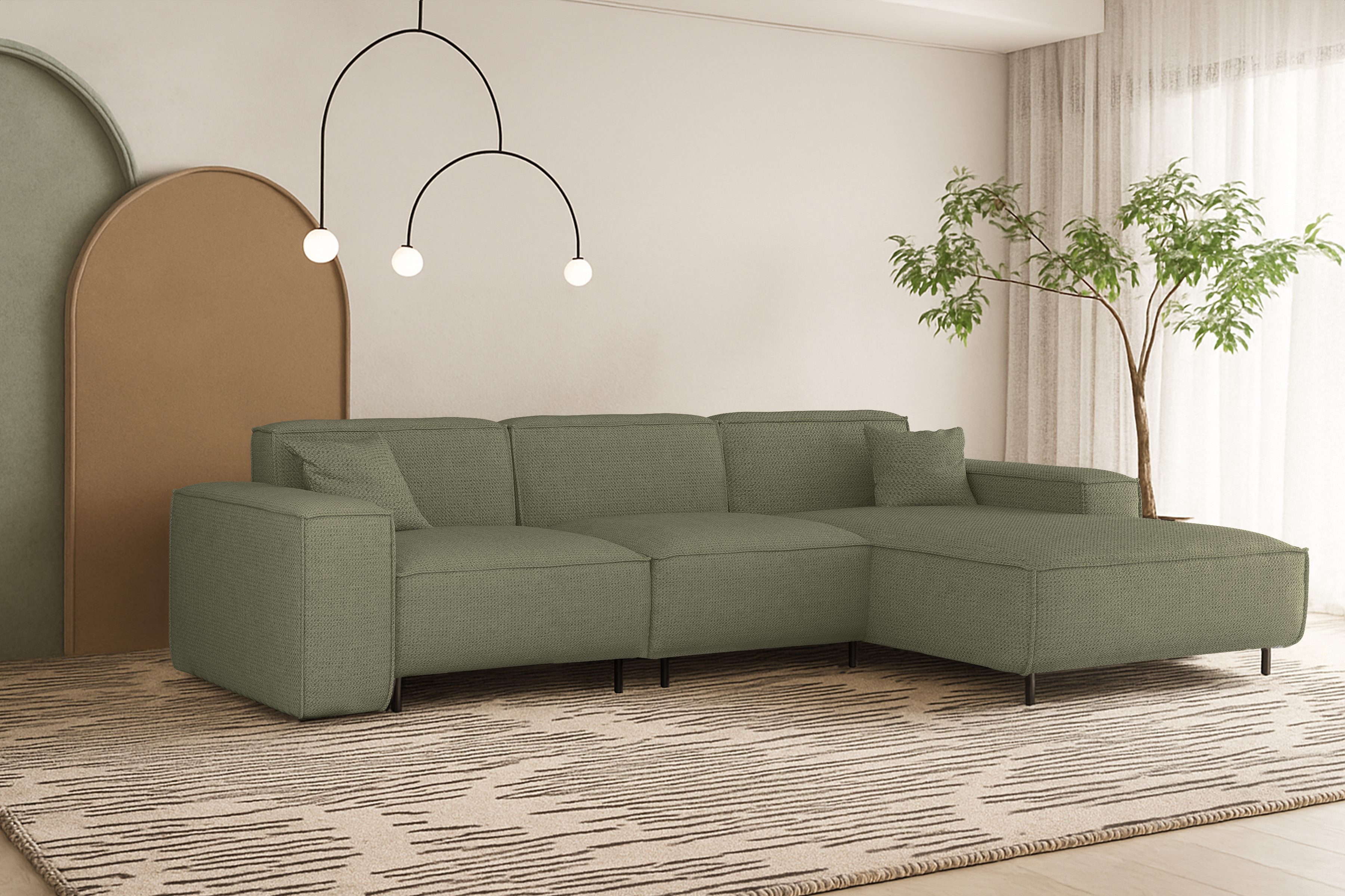 Ob als zentraler Blickfang im Wohnzimmer oder frei im Raum platziert – LUGA L HILLS überzeugt durch ausgewogene Proportionen, hochwertige Verarbeitung und ein zeitloses Erscheinungsbild. Dieses Sofa schafft eine Atmosphäre der Ruhe und lädt zu entspannten Momenten mit Familie, Freunden und Haustieren ein.