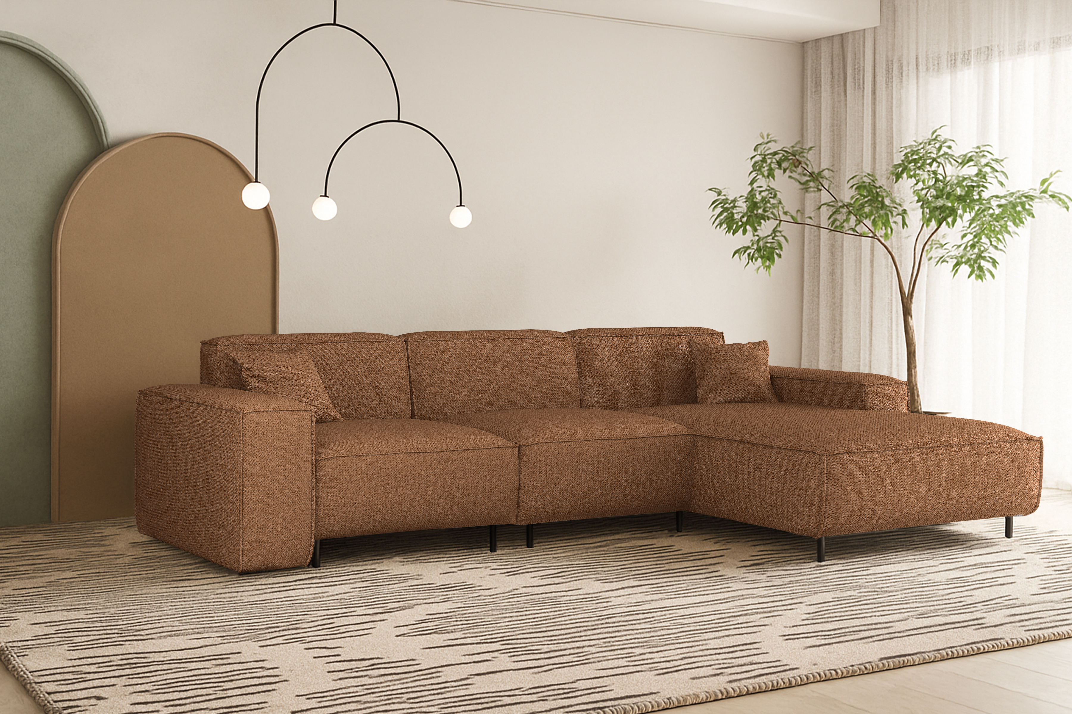 Ecksofa LUGA L HILLS – elegantes Designer-Ecksofa in L-Form mit Polsterstoff ARTICO für modernes Wohnen - Kupferrot