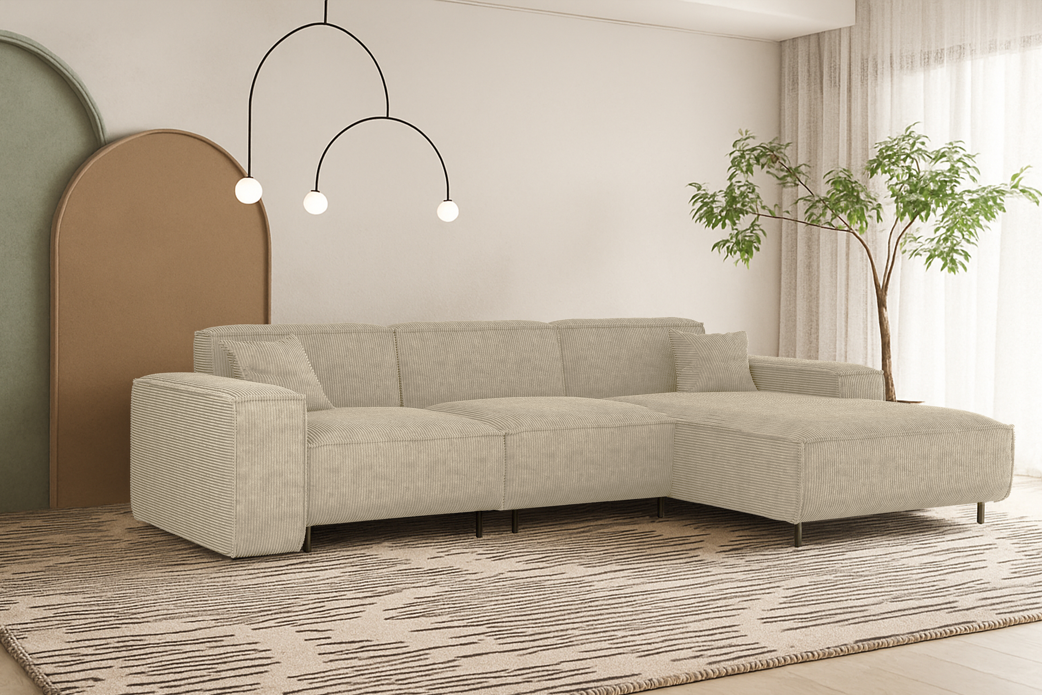 Ecksofa LUGA L HILLS – elegantes Designer-Ecksofa in L-Form mit Strukturstoff SCALA für modernes Wohnen, Stoff Scala - Sand Beige
