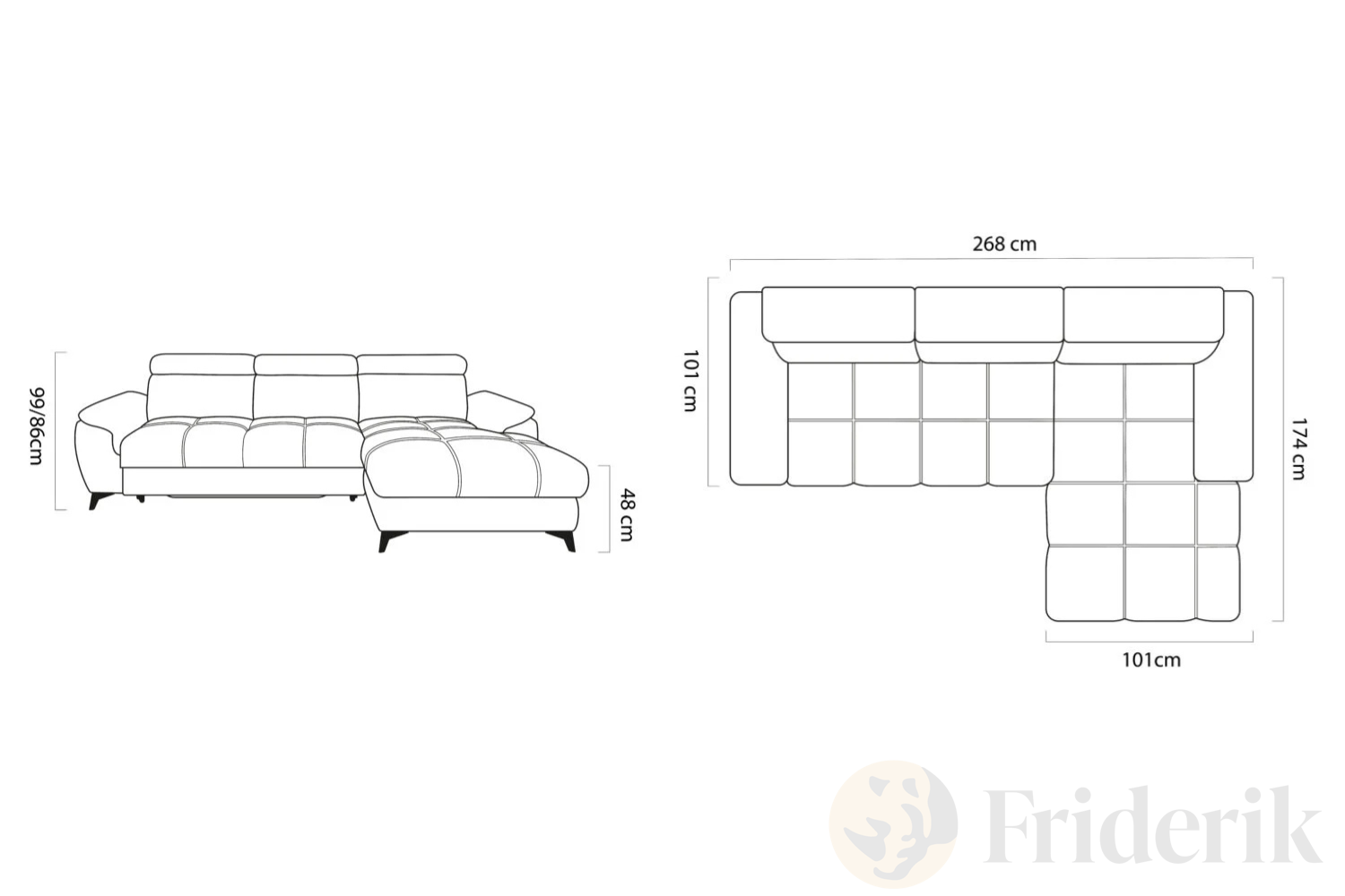 - Sitztiefe: 101 cm