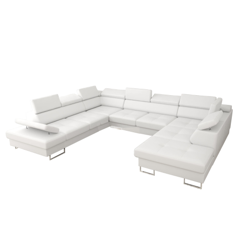 Ecksofa Leder GALAXY MAX I Ledersofa 280x350x225 cm Schlaffunktion und zwei Bettkasten, Weiß (L-1)