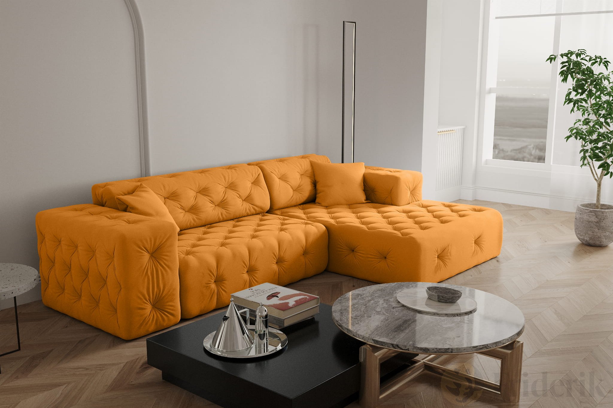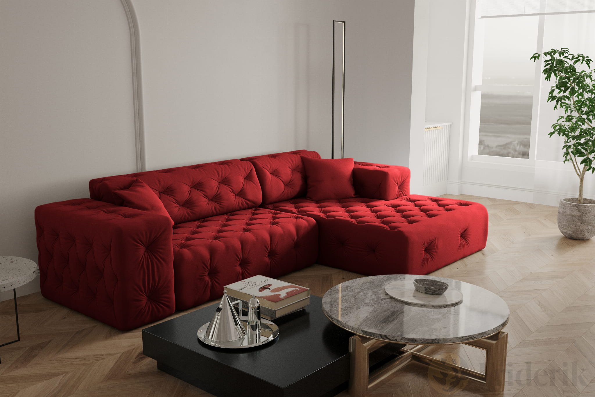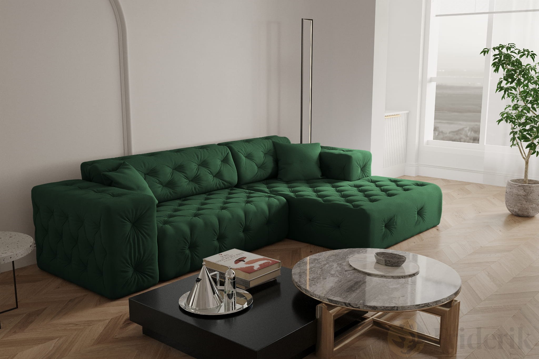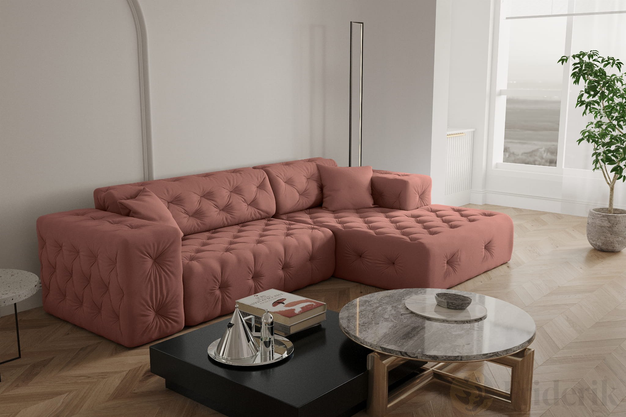 Stellen Sie sich einen perfekten Nachmittag vor: gemütlich entspannen, eingehüllt in den weichen Samtstoff „Opera“, umgeben von modernem Chesterfield-Stil und einem Hauch von Luxus. Das L-förmige Ecksofa MODEST verbindet erstklassigen Komfort mit elegantem Design und robuster Verarbeitung – ideal für Familien mit Kindern und Haustieren. Mit einer Sitzfläche von 60 cm Tiefe, breiten Armlehnen und dekorativen Kissen wird Ihr Wohnzimmer zur Wohlfühloase. Dank der großzügigen Maße von 266 x 165 x 73 cm passt sich das Sofa perfekt Ihrem Raum an und bietet dank der breiten Ottomane zusätzlichen Platz zum Relaxen. Erleben Sie Möbel, die nicht nur gut aussehen, sondern auch ein echtes Zuhause schaffen.