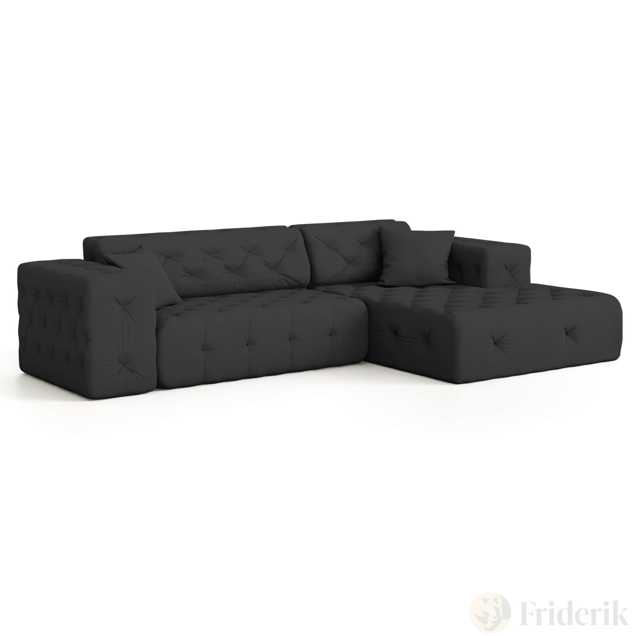 Ecksofa MODEST MINI L-Form Links/Rechts gesteppt mit Kissen - Schwarz