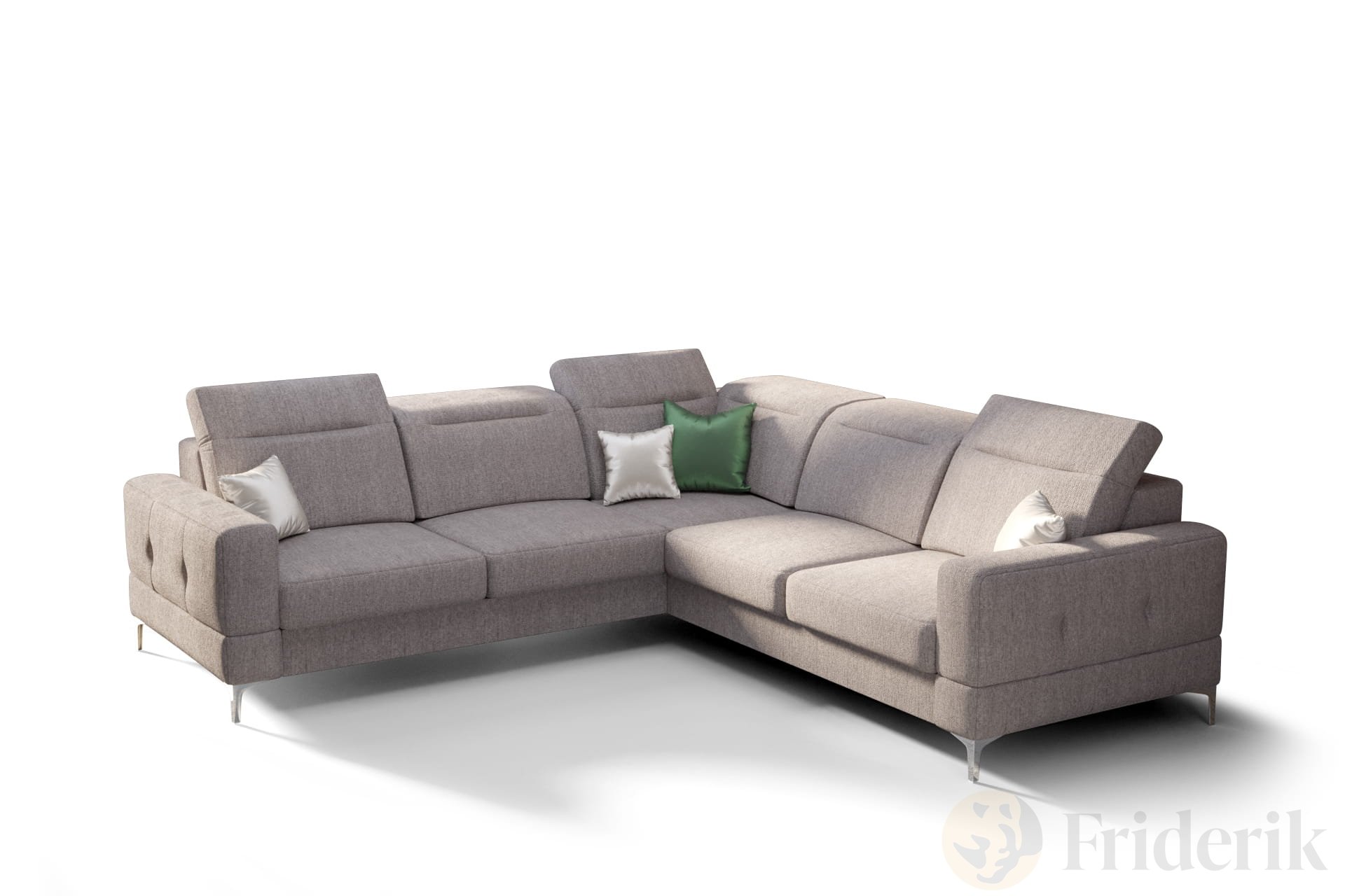 Ecksofa Malibu Max 250x250 cm mit Schlaffunktion, Stoff Gemma, Verstellbare Kopfstützen & Armlehne, Beige (Gemma 86)