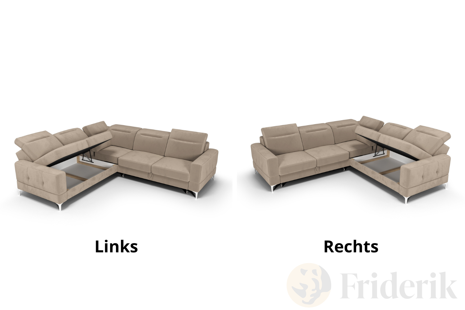 Geräumiger Bettkasten: Versteckter Stauraum für Kissen, Decken und mehr – je nach Wahl der Stellrichtung links oder rechts integriert.